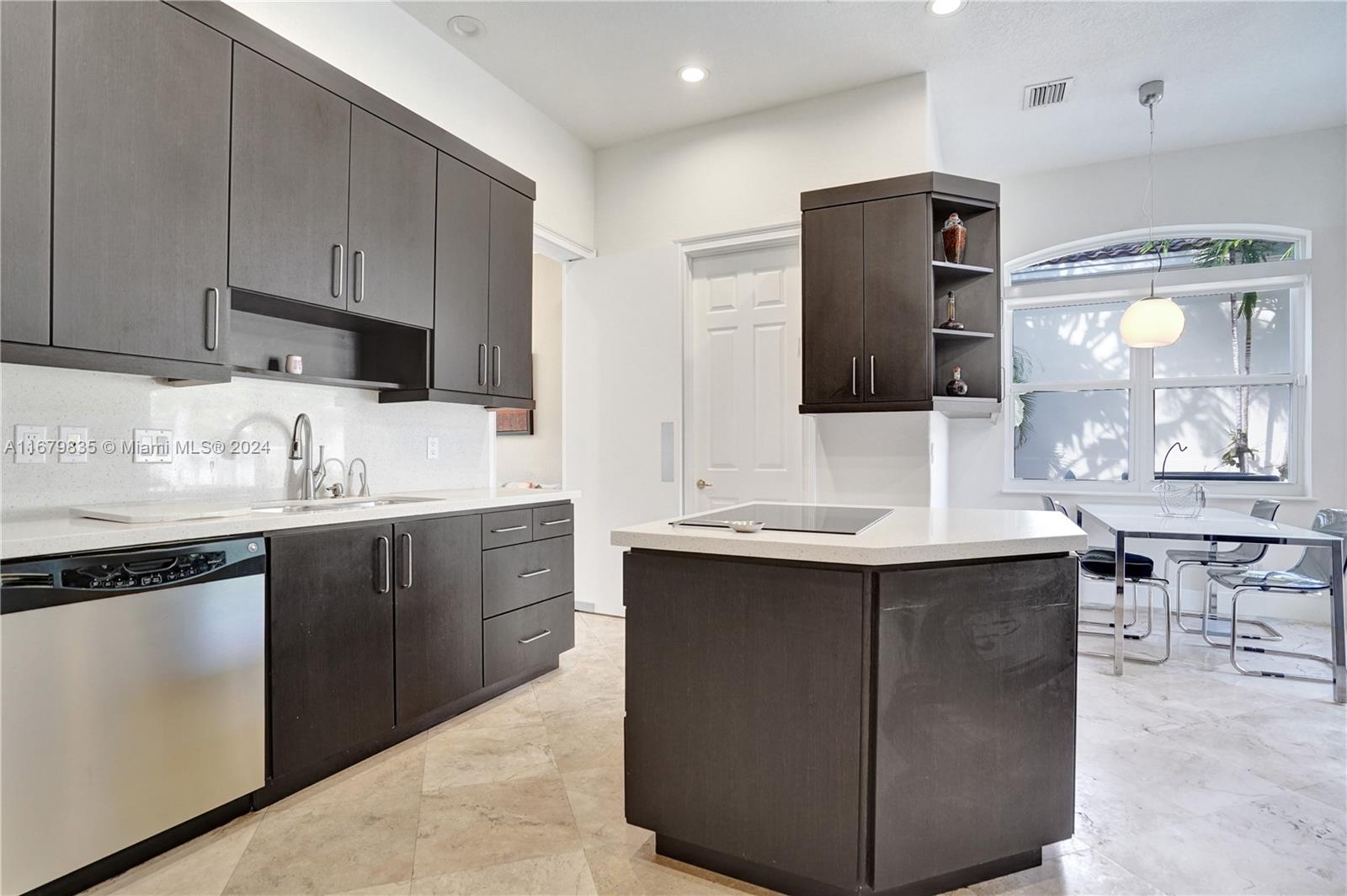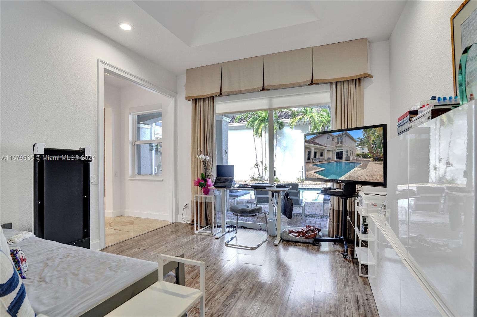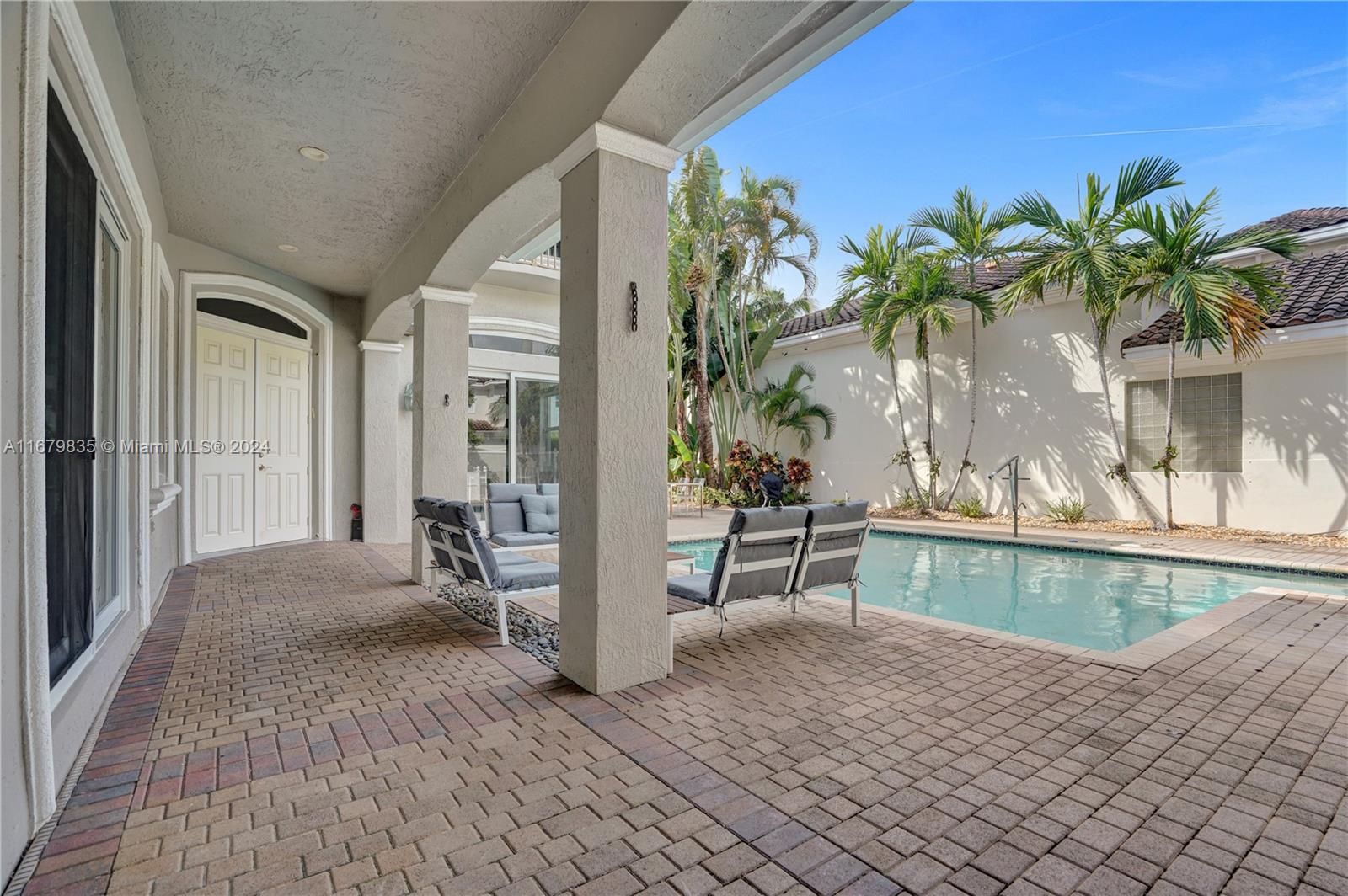 Located on a quiet tree lined street in the prestigious gated community of Harbor Islands. 4-bedroom courtyard home with a separate 1-bedroom guess house. All the rooms are large and filled with light. This home has an elevator in the main house, impact windows and a full house generator. The extra spacious patio includes a heated pool, and a large play area. All landscaping is maintained by the association so you can enjoy the amenities like the on-site health spa, full-service marina, lighted pickleball & tennis courts or take a walk in the community’s 20-acre park. Harbor Islands is a gated community with 24-hour security.