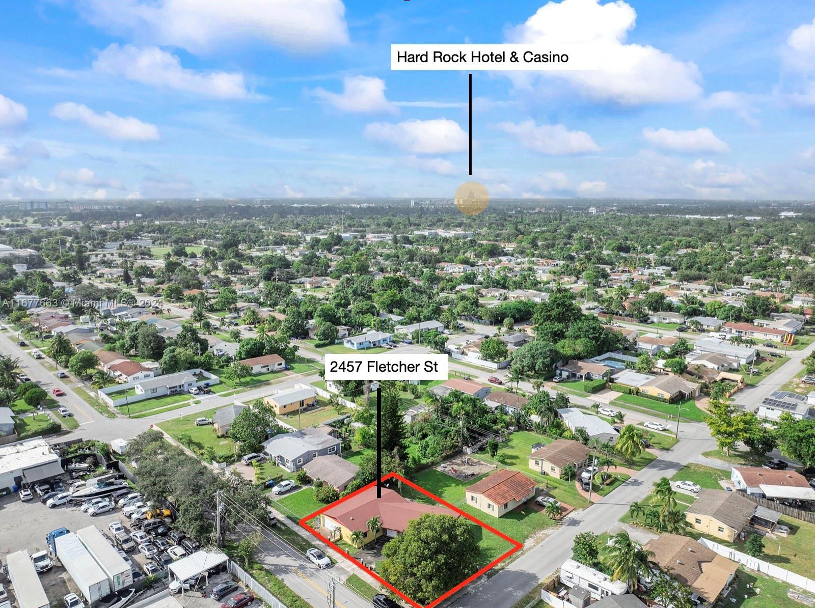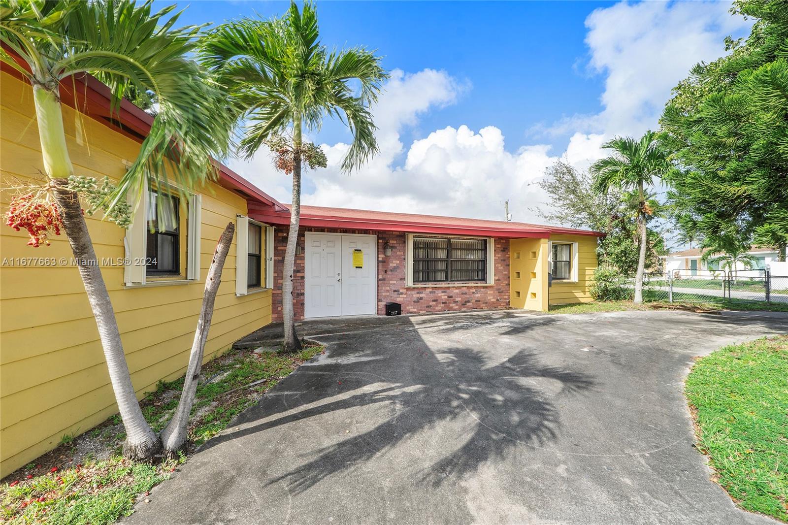 Calling all buyers! The perfect opportunity for an investor, part time or end user. Don't miss out, location is Key! Live minutes to Hallandale & Hollywood Beaches, close to Downtown Hollywood, Young Circle, major highways, and Ft. Lauderdale Intl. Airport. This home has 3 bedrooms, 2 bathrooms + an office/den on a large 7,153SF corner lot. The roof is approx. (2019-2020), and there's a full set of easy close accordion shutters. There are two living spaces, kitchen with stainless steel appliances, dining room area, and fully fenced backyard. The large round-about driveway allows for at least three cars to park plus the 2 car garage. Work your magic, bring your imagination, and turn this home into a great income producing property or your own South Florida dream home.