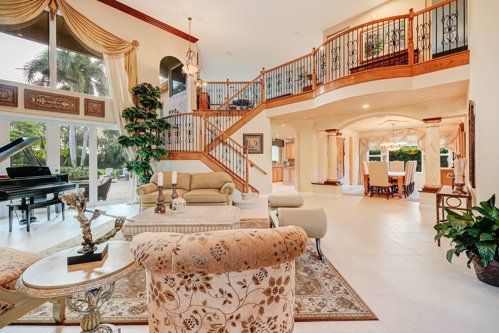 Impeccably maintained home in sought after gated Long Lake Estates. 5 bedrooms 4.5 baths + office + loft. On one of the largest lots in the community. Soaring ceilings throughout, with natural light from the impact windows and doors, this home delivers functionality and wow factor. manicured lawn, shimmering pool, open patio with entertaining space, and multiple french doors leading outside. Sprawling primary suite with high ceilings, wide wood plank floors, access to the patio, dual walk-in custom closets, large en-suite bath with separate tub and shower. Downstairs guest room &bath, interior laundry room. Upstairs oversized loft overlooking the family & living rooms. 3 spacious guest rooms upstairs. 2019 tile roof, 3 new 2024 AC units, 3 car garage + storage. Close to the best of Davie!