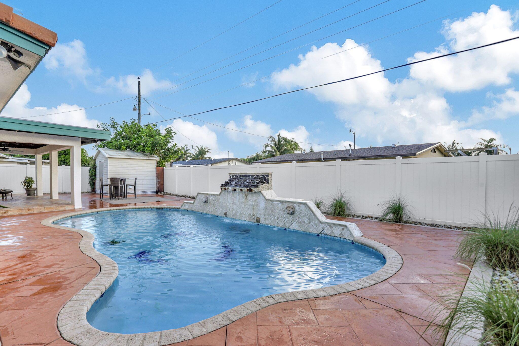 Gorgeous, updated home on large lot with mega parking and all the rings and bells. Come see the lovely updates including newer appliances, smooth ceilings, tile throughout, full accordion shutters & tankless water heater. Kitchen offers wood cabinets, granite counters & buffet bar for entertaining all. Updated bathrooms, Ice cold a/c, spacious bedrooms, 35 yr roof with 15+ years of life, huge living room and so much more! Looking for privacy? Jump into your designer salt or chlorine pool with dolphin and turtle designs, beautiful waterfalls and wrap around deck. Your covered patio makes backyard BBQ's a must! Oversized shed with W/D hook-ups makes laundry a dream while floating around your private pool. New fans, lights and fresh paint! Ask about 35K down pymt assistance-Home Town