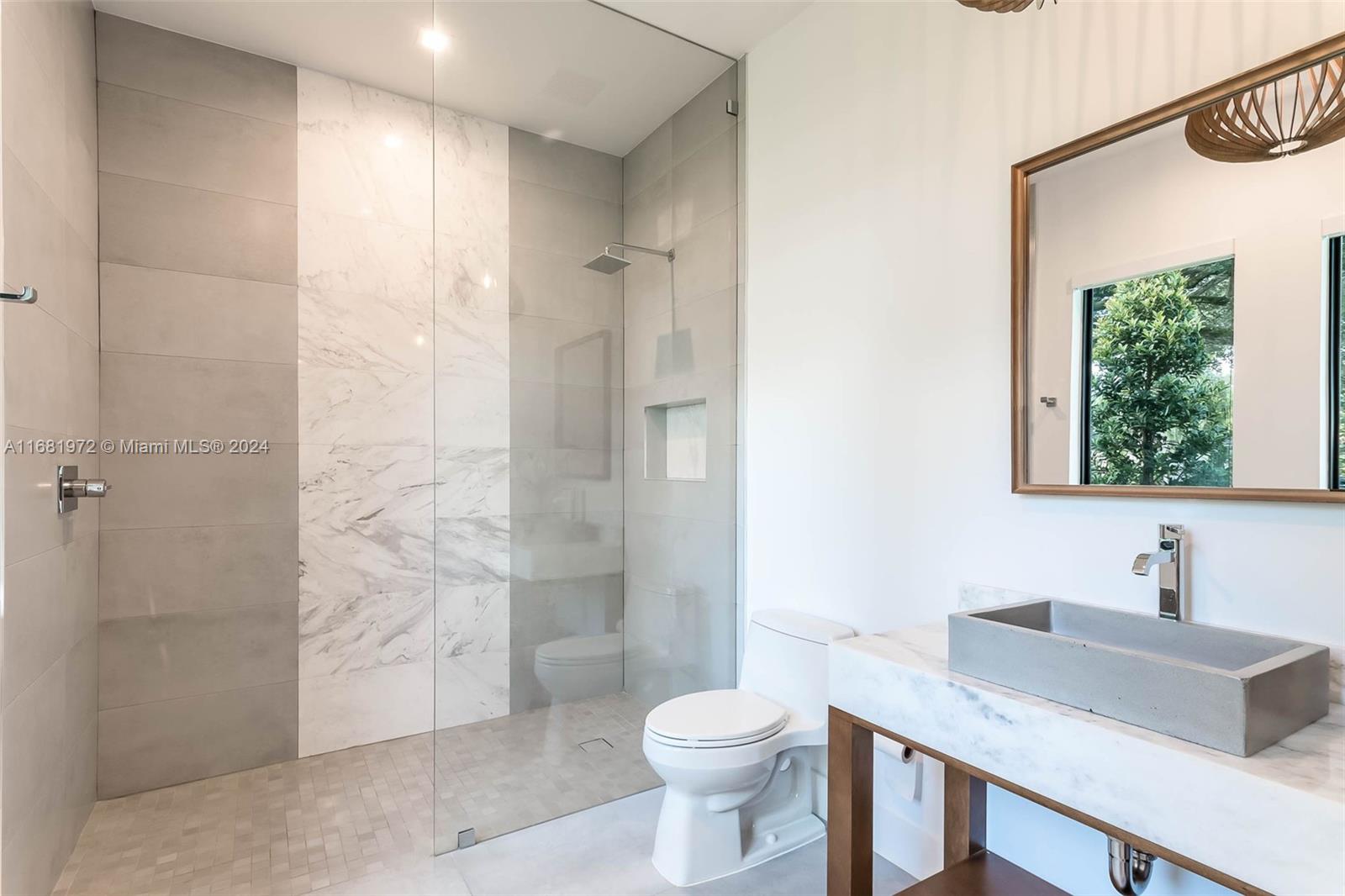 Sophisticated & modern 4 bdrm, 4.5 bath masterpiece, remodeled to perfection in 2021 on a serene half acre lot in the Village of Pinecrest. Fabulous open living area w/ 10 ft ceilings & sliding glass doors w/ views of the pool & garden. Gorgeous kitchen w/ quartzite countertops, handcrafted cabinetry, oversized island w/ seating, Thermador smart appliances. The ultimate formal dining rm perfect for a holiday gathering. Ideal split floor plan w/ en suite guest bdrms & secluded primary suite w/ stunning bath, complete w/ wet room, & walk-in closet. Impact windows/ doors, custom window treatments. Deep covered terrace, inviting saltwater pool w/ water features, summer kitchen, Bose surround sound. 2 car side entry garage w/ excellent storage. Centrally located near shops, restaurants & parks.