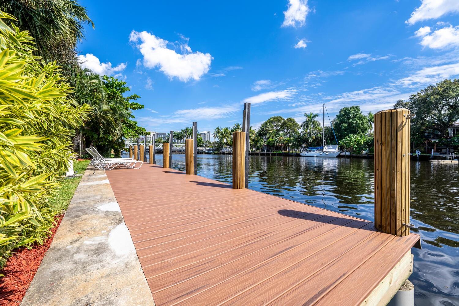 Boaters Welcome Home! True Paradise with tropical waterfalls and salt water heated pool, lush landscaping, point lot with 266’ of waterfront and 166’ of seawall, private gated entrance, upgrades throughout, new roof, new A/C Units & Many other upgrades. Convenient location right in the heart of Historic Ft Lauderdale where you can stroll along the Riverwalk path that follows the New River. Close to famous Las Olas Blvd and Ft Lauderdale Beach, this secluded and exclusive property is perfect for boaters looking for privacy, easy ocean access, no fixed bridges, and protected waters.