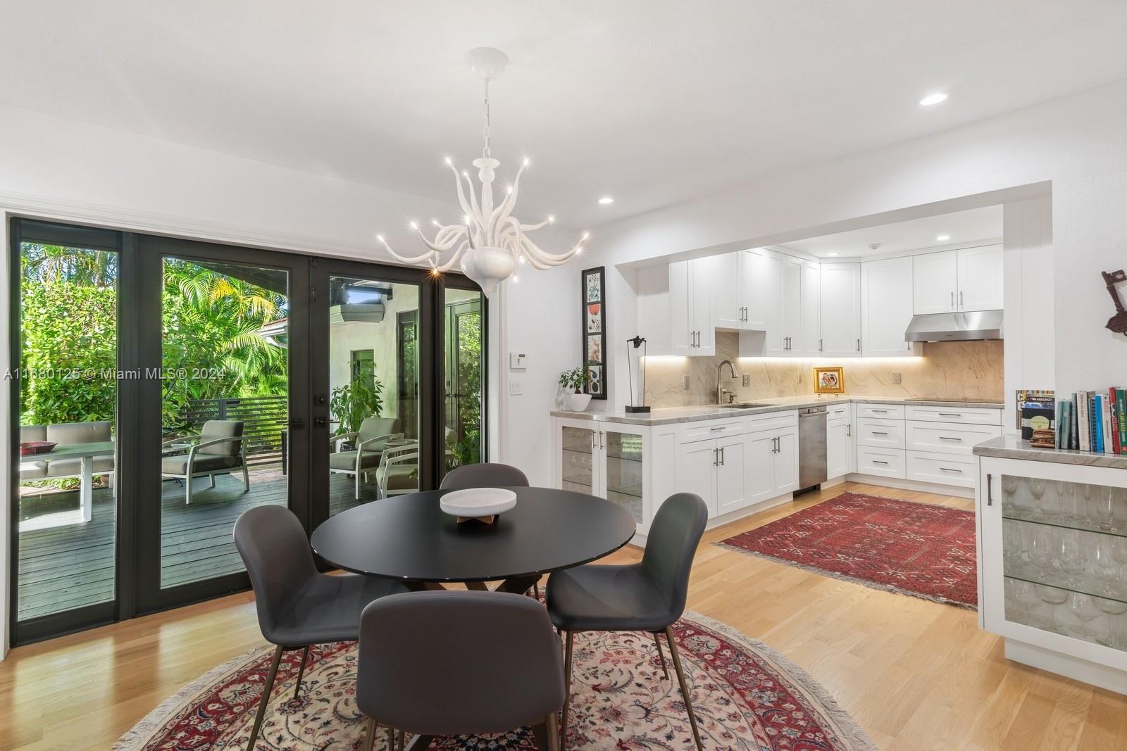 Wonderful opportunity to live in an oak canopied street and sought-after neighborhood, close to schools, shopping, transportation and an inspired lifestyle. The one-story home is nestled amidst lush, professionally designed greenery with a large brick driveway, paths and inviting front porch. The foyer opens to a wide and long gallery, just perfect to display your art or book collections. Beautiful light-filled living room with vaulted wood ceilings has glorious views of the free-form pool and lavish mature landscaping. Formal dining (or study, playroom, optional fourth bedroom). The spacious kitchen with its informal dining area leads to a covered outdoor terrace. One-car garage, impact glass and doors including garage, 30kw generator with a 500 gallon underground gas tank. Owner/agent.
