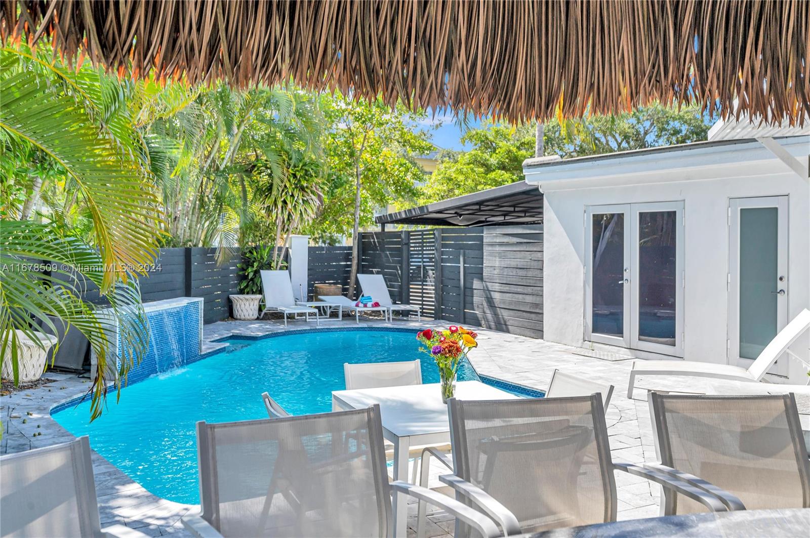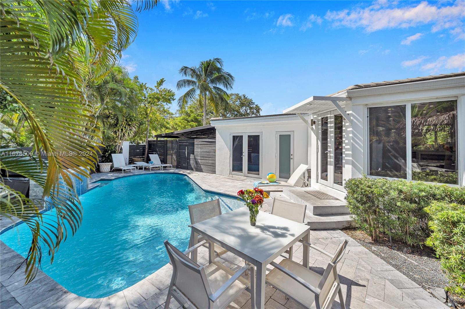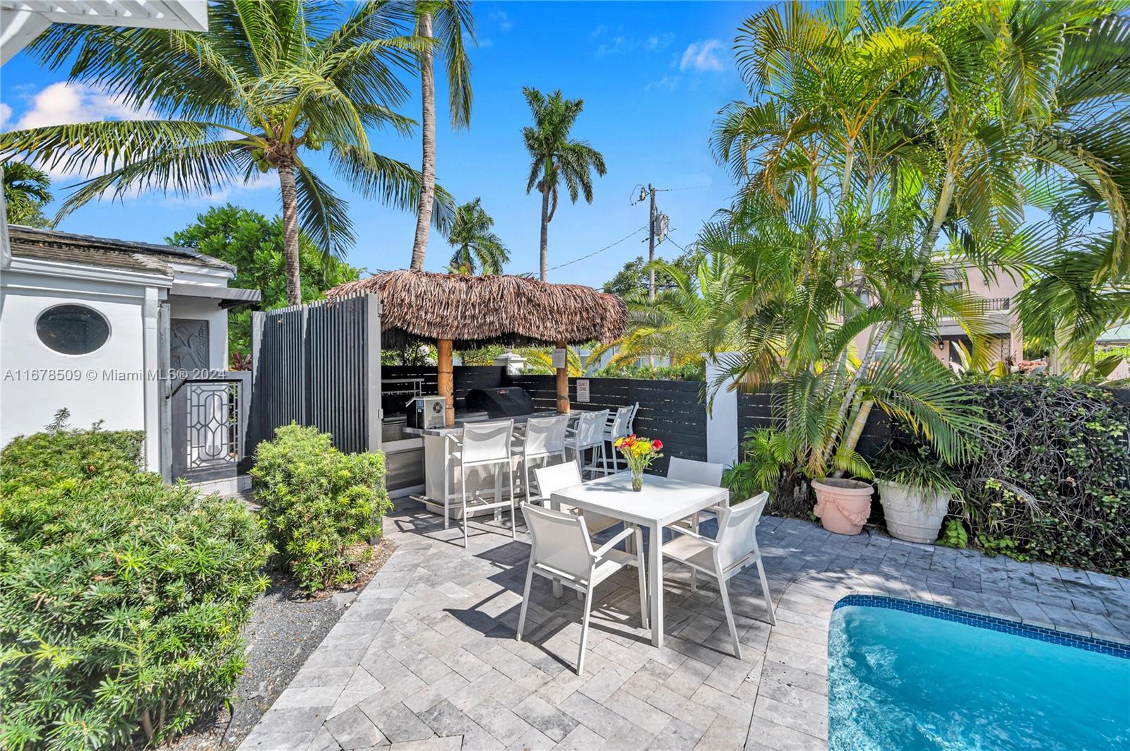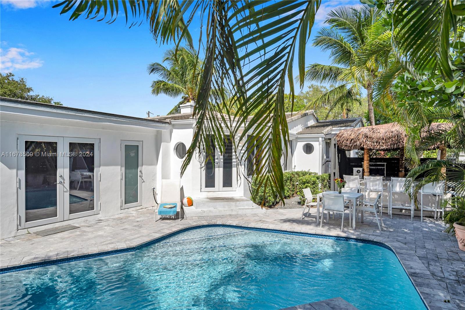 PRICE REDUCED! Tucked away in a quiet niche, this stylish and turn-key home could be yours. A retreat of light and open spaces, this 4 bedroom, 4 bathroom home has all the stylish conveniences you require. Vaulted ceilings sheathe the home with ample breadth. Cozy winters by the fireplace. Airy large bedrooms, contemporary bathrooms and expansive walk-in closets for your needs. French doors give access to your sparkling pool, an alcove of tranquility amongst the palm trees. Quiet nooks to regenerate and renew. Entertain friends and family year round at your pool side Tiki-Hut Bar and Summer Kitchen. Enjoy quick access to Las Olas' dining and entertainment. Relish the Florida lifestyle on the sought after beaches 5min away. Seize the opportunity to own this gem today!