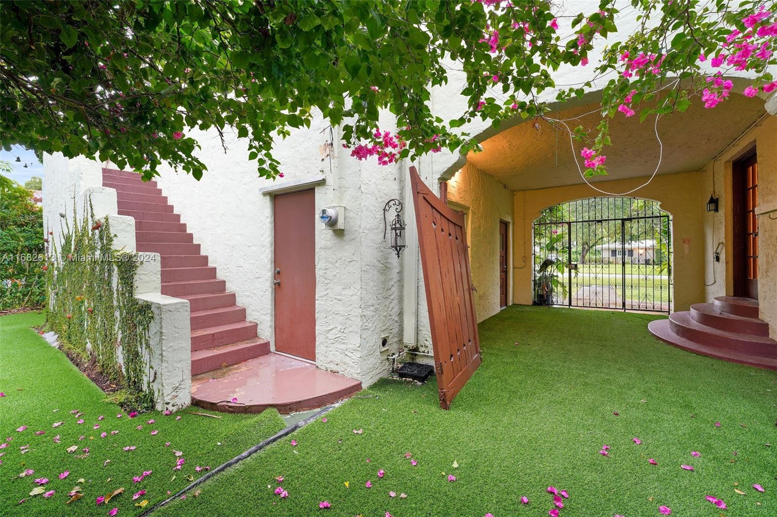 Charming old Spanish in the heart of Coral Gables. 4/2 two story main house, formal living and dining rooms, original oak floors and cozy fireplace. The guest house is home to two self-contained apartments and the laundry room. Perfect for blended families.
