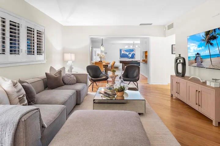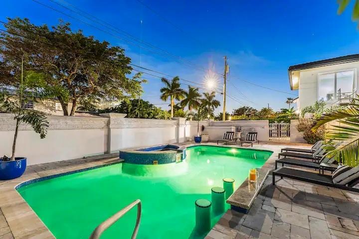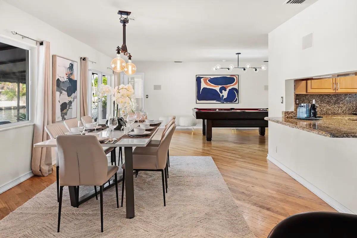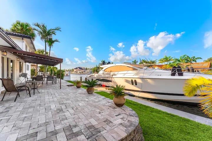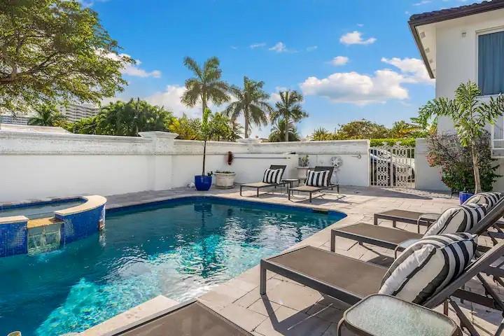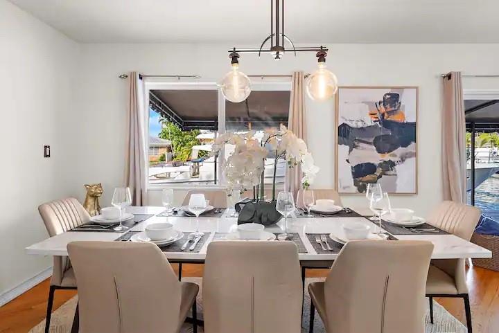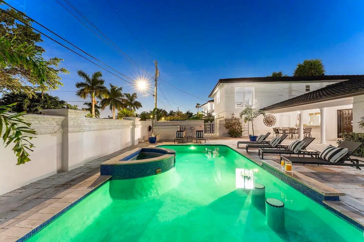 NO FIXED BRIDGES! Welcome to your dream home in Bermuda Riviera! This unique waterfront property in an exclusive Intracoastal community offers a luxurious lifestyle at an exceptional value. Featuring 5 spacious bedrooms, 4.5 bathrooms, and 2,946 sq ft of living space with plenty of room for family and entertaining. Private oasis with a sparkling pool (in front) and an 80-ft dock with 100AMP connection, perfect for boating enthusiasts. Just a 10-minute walk or 5-minute bike ride to the beach, you'll enjoy the best of coastal living. Inside, genuine hardwood floors and abundant natural light create a warm, inviting atmosphere. Roof, plumbing from 2009.