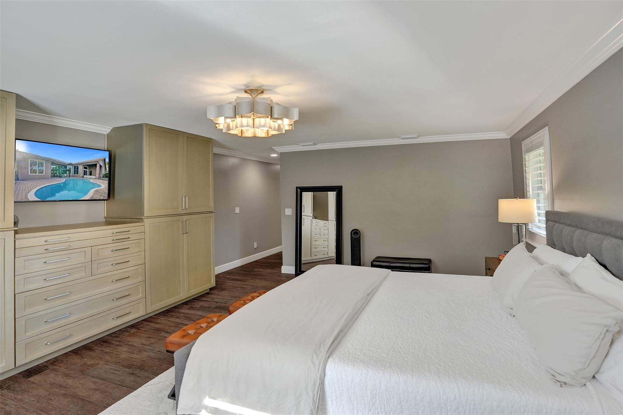 For those with a taste for luxury & precision, this meticulously maintained corner lot home in Whispering Pines is a true must-see! Enjoy this tastefully upgraded 4 bed, 3 bath pool home on builder’s acre next to the preserve! Gourmet kitchen featuring custom shaker cab., Thermador appl. & quartz counters! Family rm w/ wet bar & unique backsplash w/ built-in seating! Primary BR offers custom walk-in closet & bath w/ dual vanities, soaking tub & sep. shower! Vast, private yard boasts freeform pool & lush landscaping ensuring privacy! Enclosed Fla. room allows for more entertaining space! Laundry room w/ LG front loading W/D & utility sink! Impact glass, recessed lighting, crown molding, Pl. shutters & so much more make this one-of-a-kind home an incredible find! Being sold Fully Furnished!