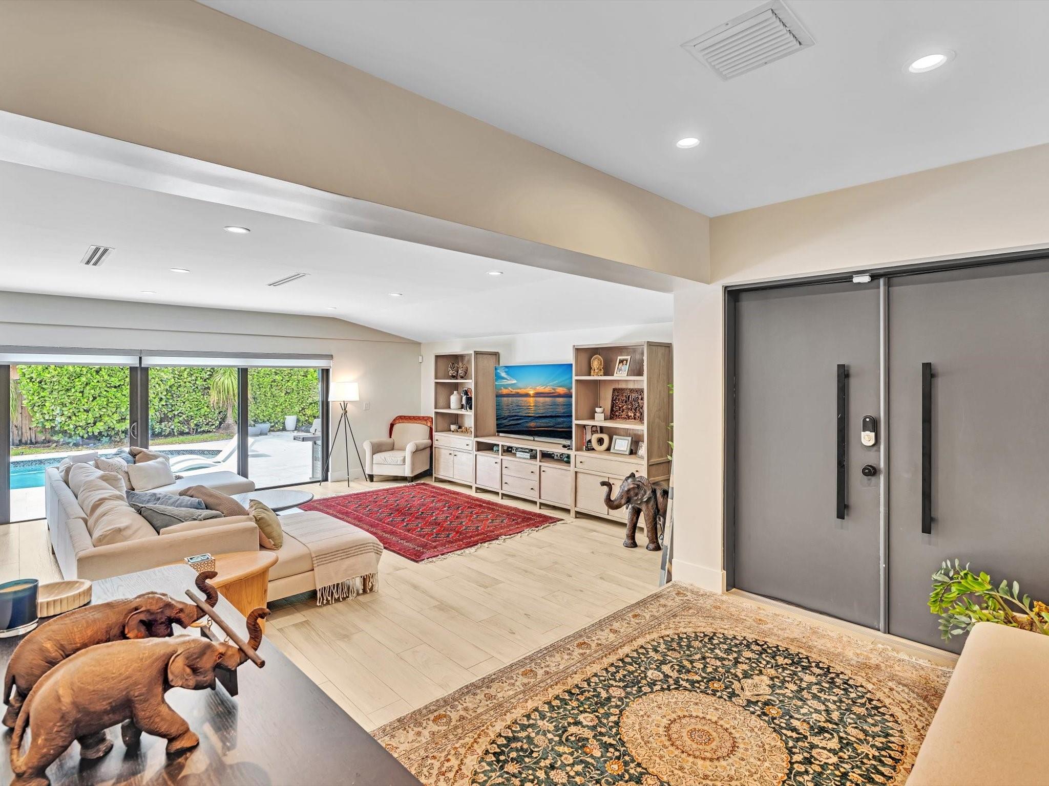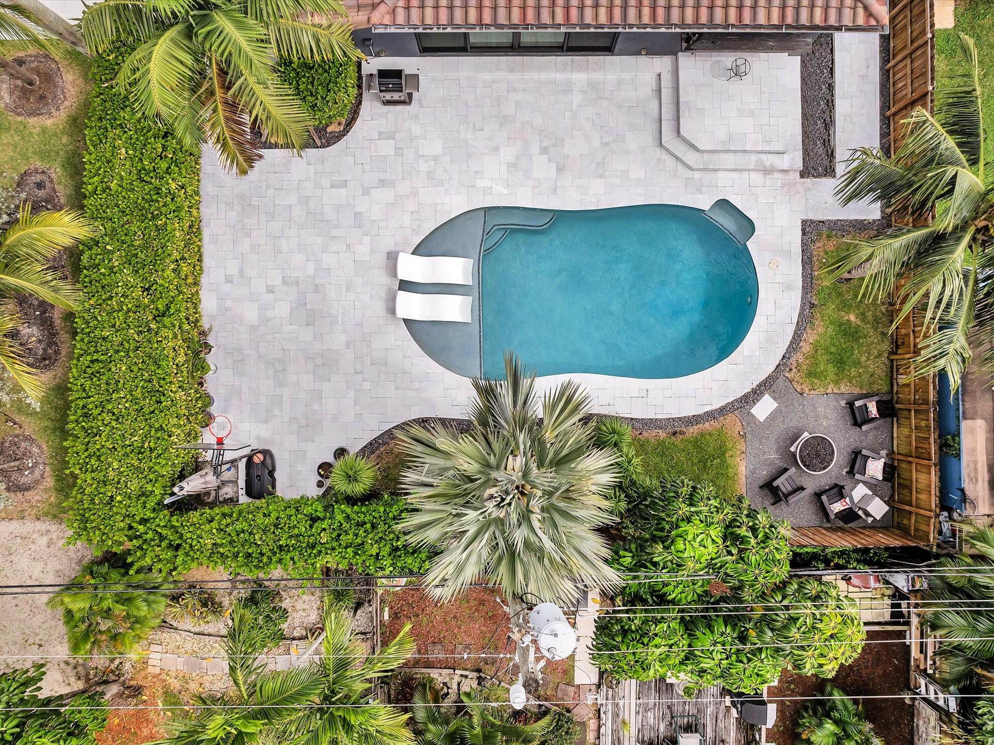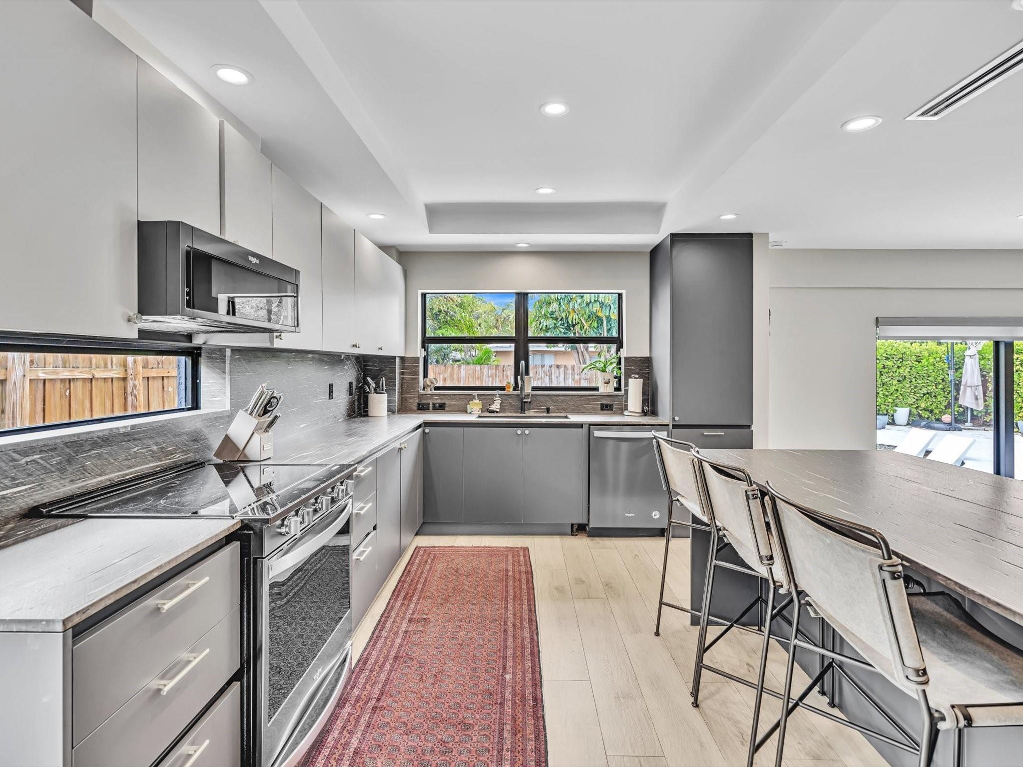 Welcome to your dream home in the desirable Poinsettia Heights neighborhood! This beautifully designed 3 bedroom, 2.5 bath residence offers 1,962 sq ft of luxurious living space, perfect for both entertaining and everyday comfort. Step into a welcoming foyer that sets the tone for the elegance throughout the home. The chef-worthy kitchen offers Brazilian quartz countertops and sleek black stainless appliances and a large island. The private west facing saltwater pool and spacious patio area is ideal for sunbathing and outdoor gatherings. The yard is fully fenced in and the home provides impact windows and doors and electronic shades throughout. Don't miss your chance to own this elegant property. The location is private while providing shopping, dining and entertainment nearby.