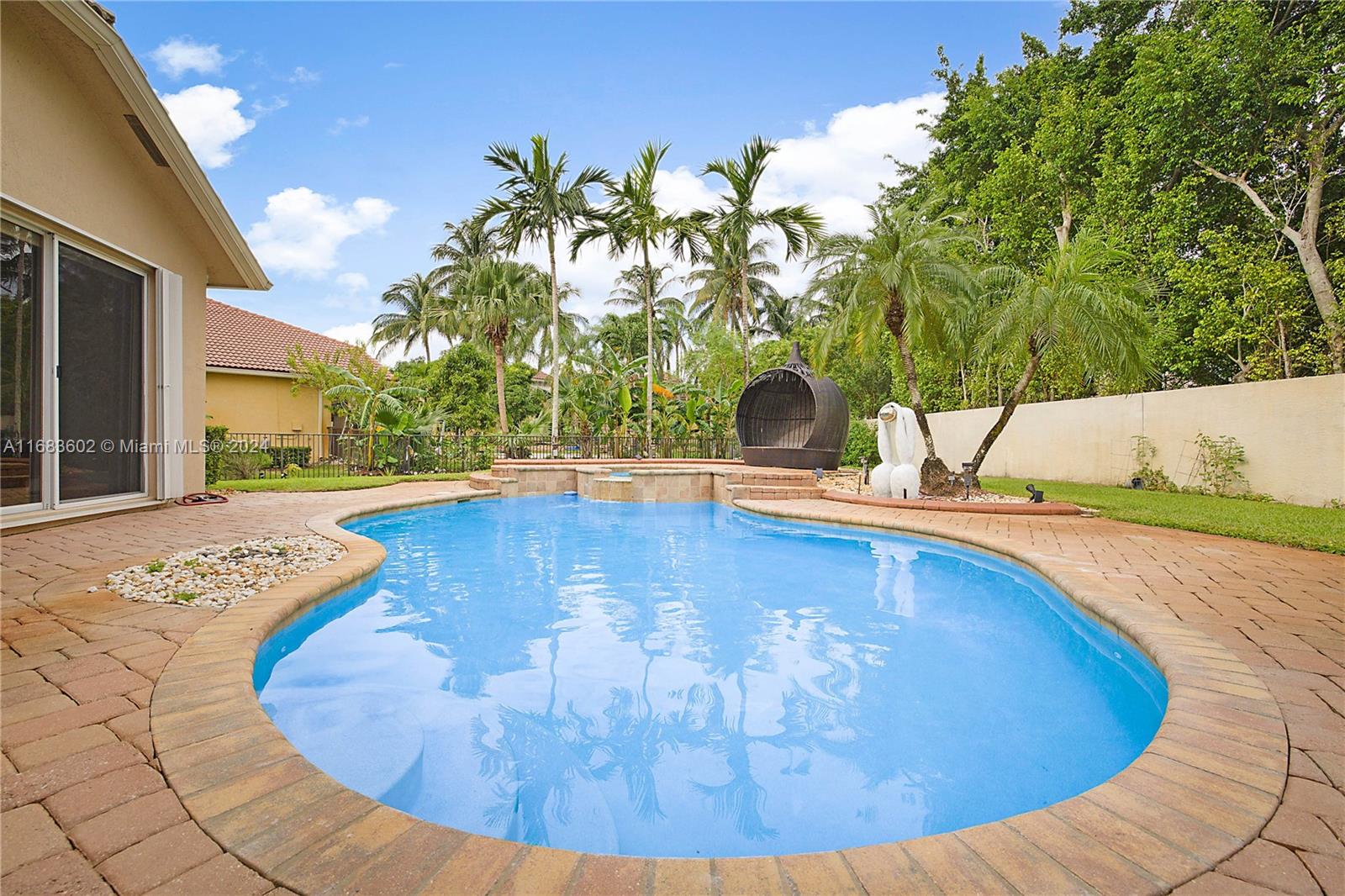 Welcome to this beautiful 5 bed/3 bath home in one of Miramar's most highly desired gated communities of Sunset Lakes. This spacious property offers a luxurious and comfortable lifestyle with an expansive open concept floor plan, the home is designed to meet the needs of modern living and entertaining. Inside, you'll find a large kitchen perfect for family gatherings or hosting. The primary suite boasts a spa-like bath, dual walk-in closets, & views of the pool. Generously sized additional bedrooms with ample closet space. Outside features a pool, spa, and landscaped gardens with a fully fenced yard, & a 3-car garage. Enjoy resort-style community amenities, including a pool, fitness center, and sports complex. This gated neighborhood offers safety and a strong sense of community.