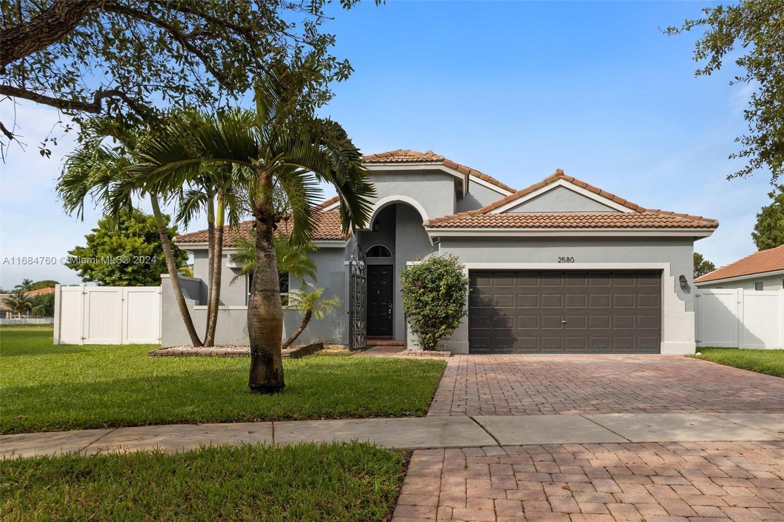 Beautiful single-story lakefront home in the quiet gated community of Monaco Cove in Sunset Lakes! This 4-bedroom, 3-bath home features a family room and has undergone extensive renovations, both inside and out, including upgraded flooring, master bathroom, impact windows, new painting, efficient AC / water heaters, and more. It features high-end finishes, stainless steel appliances, and spacious 13-foot ceilings. The fenced backyard offers stunning lake views and breathtaking sunsets, with ample space for a pool. Make this bright and spacious retreat your new home.
