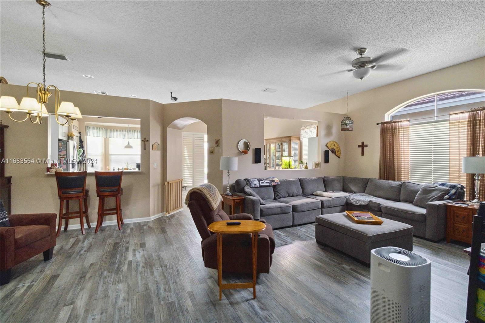 Welcome HOME! Single story house with tons of upgrades and add ups: paradise to entertain lake front patio, pool w/heater and saline system, travertine tiles, sun-setter roll out awning, weatherproof speakers, full 185 mph open view screen, accordion hurricane shutters, fenced in area for dogs, generator (whole house hard wire), 240 VAC EV charger, garage floor weather-tech & storage ceiling racks, ring cameras. Walking inside the kitchen with new waterproofs floors, new cabinets and state of the art stainless steal appliances, cozy living area with in walls speaker system, master and 2nd. bedroom with new floor, 5 years upgrade AC. LOW monthly association fee! Strategically located near highway and restaurants, shops and entertainment. Make your appointment ASAP before is gone!
