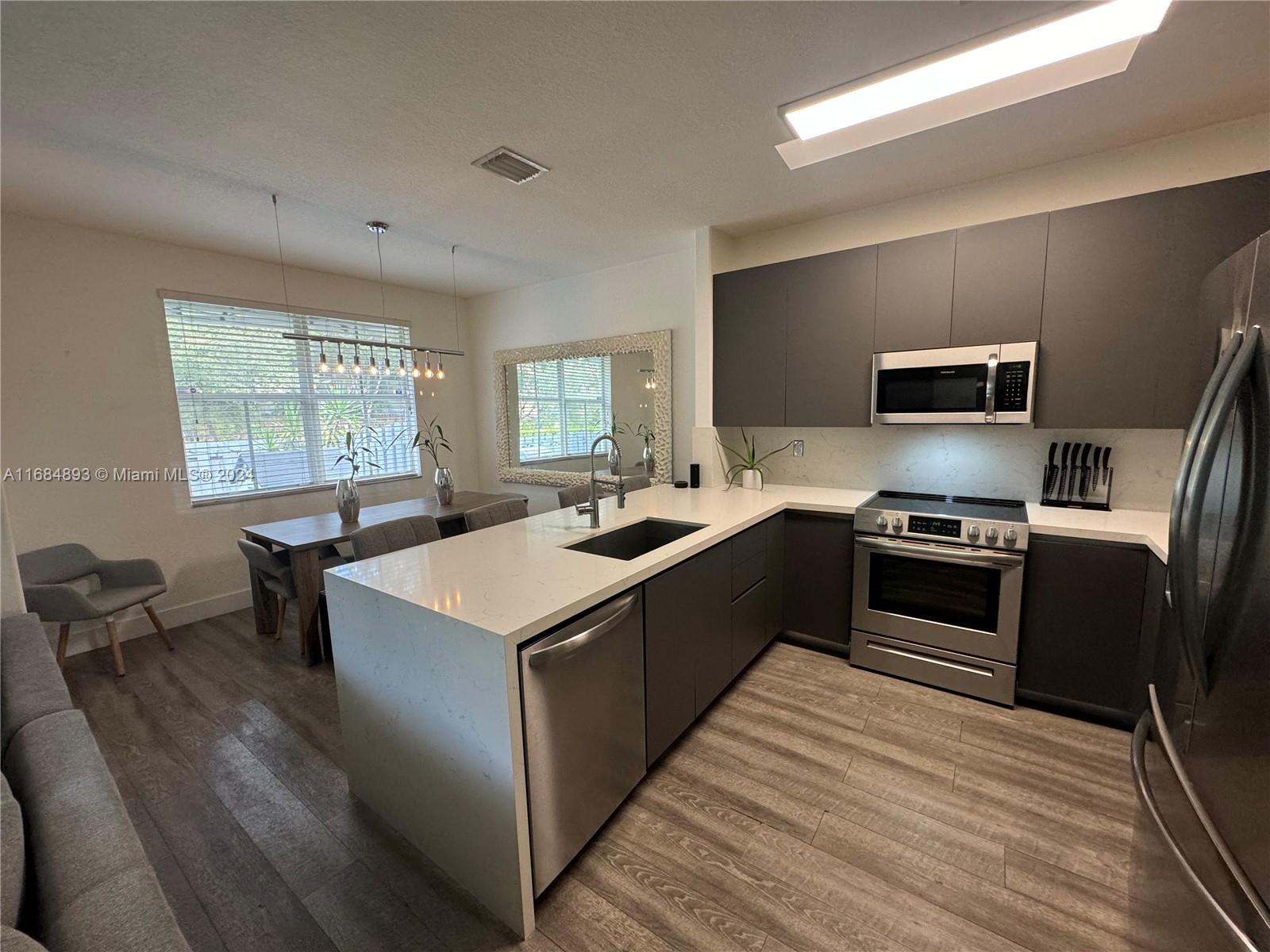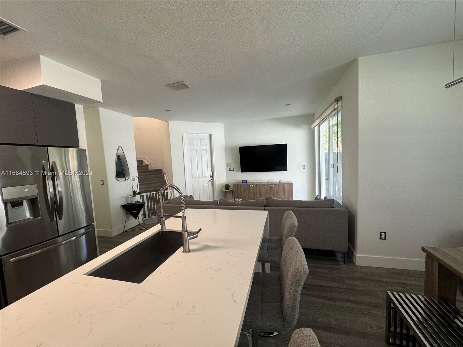 Modern & renovated townhouse corner unit 3 BR - 2.5 BA - 1 car garage + 2 driveway. Equipped with top-of-line SS appliances, Quartz countertop, and backsplash, modern kitchen cabinetry, vinyl flooring downstairs & tile flooring upstairs, a very nice private cover backyard equipped with synthetic turf and outdoor cooking grill. Resort-style Antillas Island at Doral; resort-style amenities; Pool, Gym, Tennis court, children’s playground, and public parks. Located in the vibrant neighborhood of Doral, it's close to parks, shops, restaurants, grocery stores, and A+-rated (schools across the street). Convenient location, easy access to 826 Expressway and Turnpike, just minutes from the Miami International Airport.