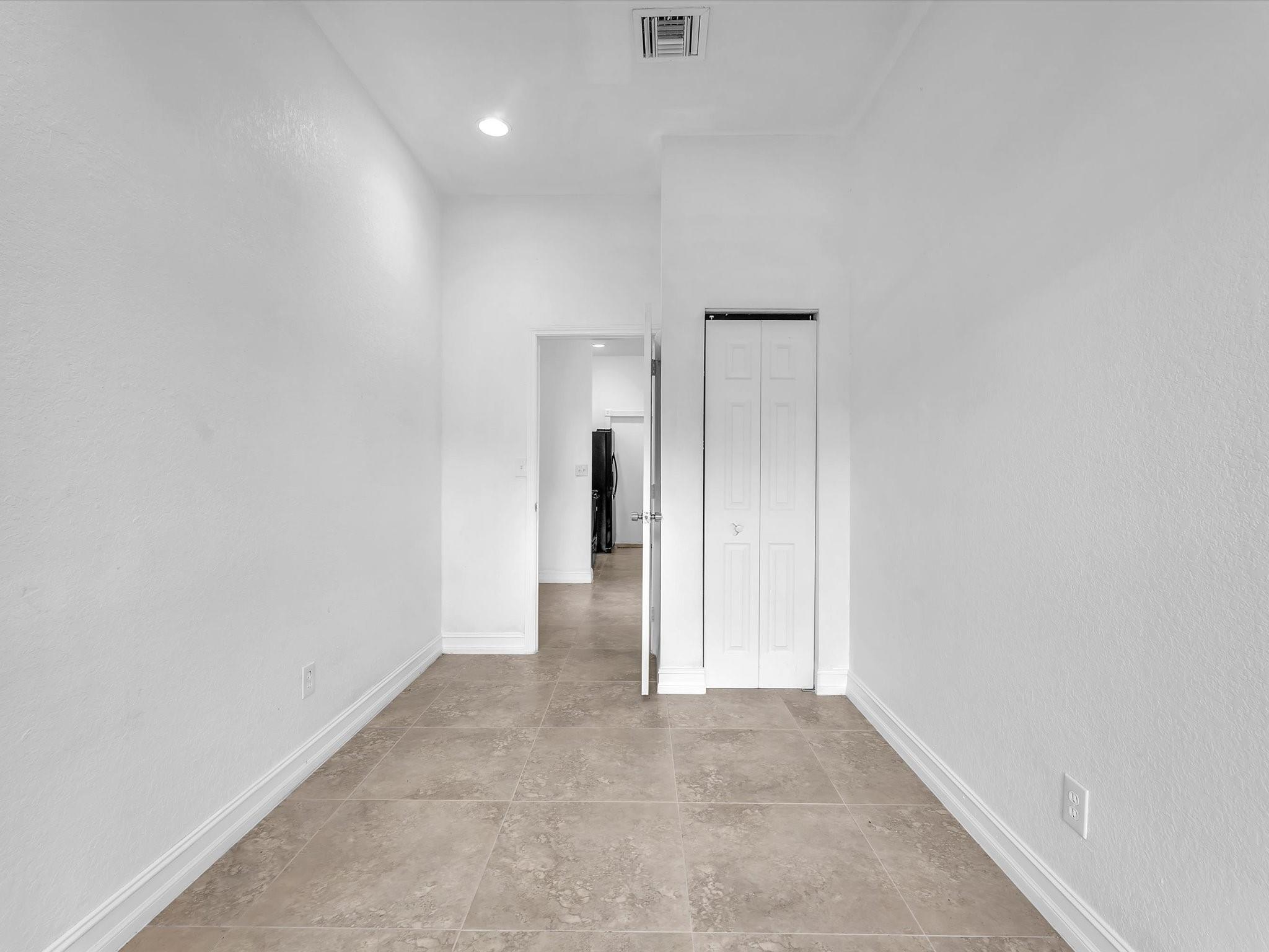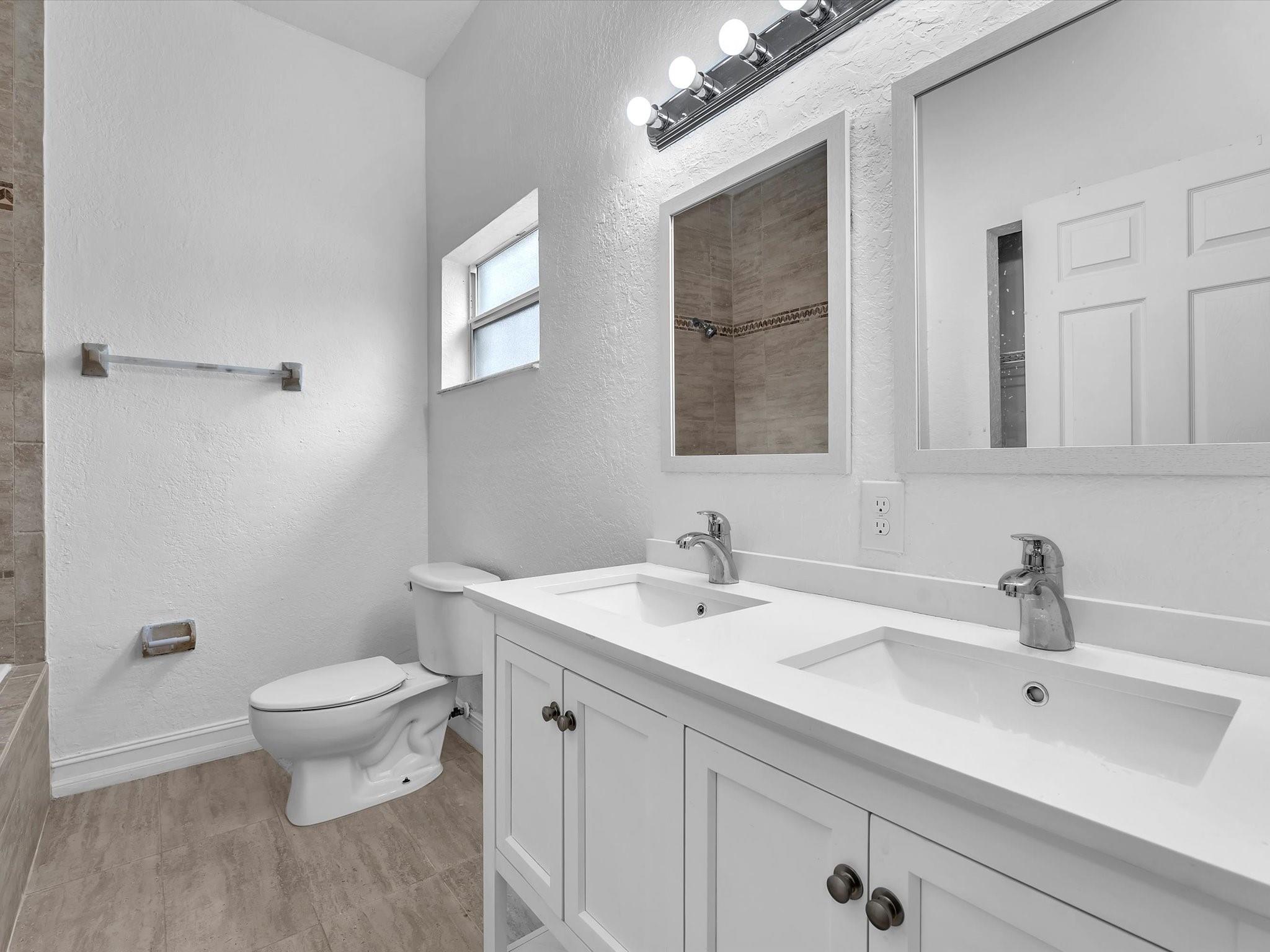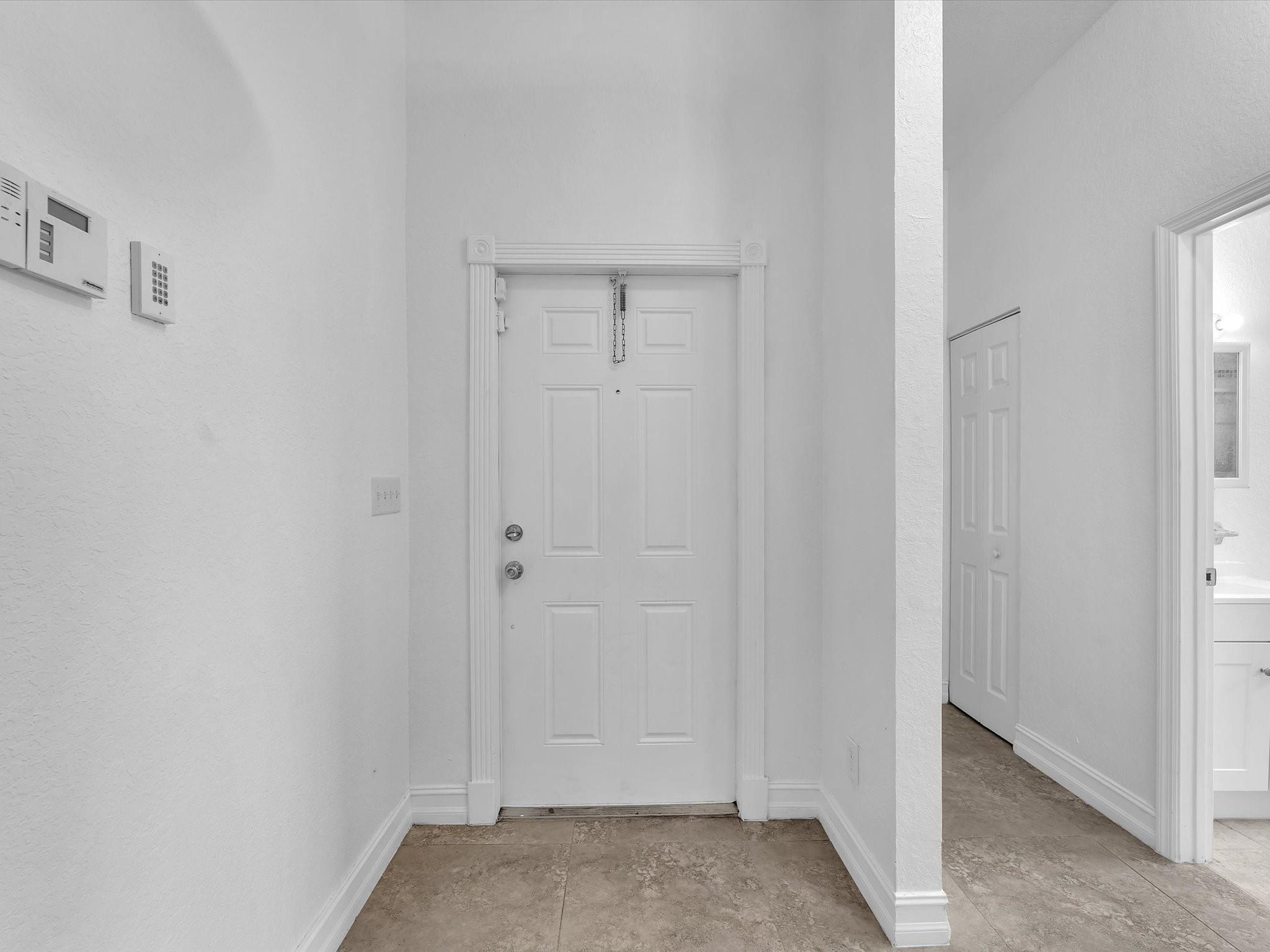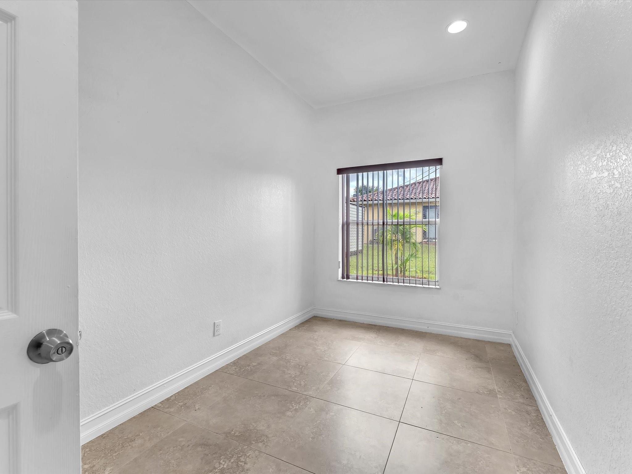 This spacious 4 bedroom, 2 bathroom home boasts 10ft ceilings and a 2 car garage. The kitchen is the heart of the home offering granite counters, new cabinetry, black appliances and a breakfast bar. The large primary bedroom provides a private retreat, with an ensuite that features a modern double sink vanity, a luxurious jetted tub, a linen closet and a walk-in closet. The open floorplan includes neutral tile flooring throughout the main living areas and new carpeting in the bedrooms. Freshly painted, new roof (6/2023), new refrigerator, aluminum hurricane panels, and a timed irrigation system.