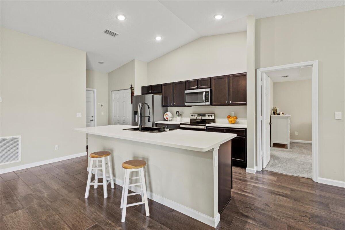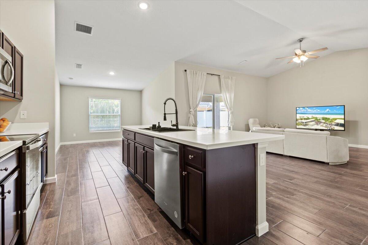 Mother-In-Law Suite!! Feast your eyes on this nearly brand new, customized Synergy Homes Verona model Exterior Elevation A , 4/2/2 CBS 1,915 square foot home, complete with a mother-in-law suite, built in 2023 and barely lived in. This home is incredible, but lot is unbeatable! This pristine home is situated on a .28 acre pie-shaped lot at the end of a cul-de-sac in the deepest interior portion of a quiet neighborhood in the coveted 34953 zip code in Southwest Port St Lucie. This is the best valued home on the market at this time with unbeatable location, incredibly spacious floor plan complete with a Northward facing covered patio and a huge, private backyard due to the pie-shaped lot on the cul-de-sac, and it's nearly brand new.