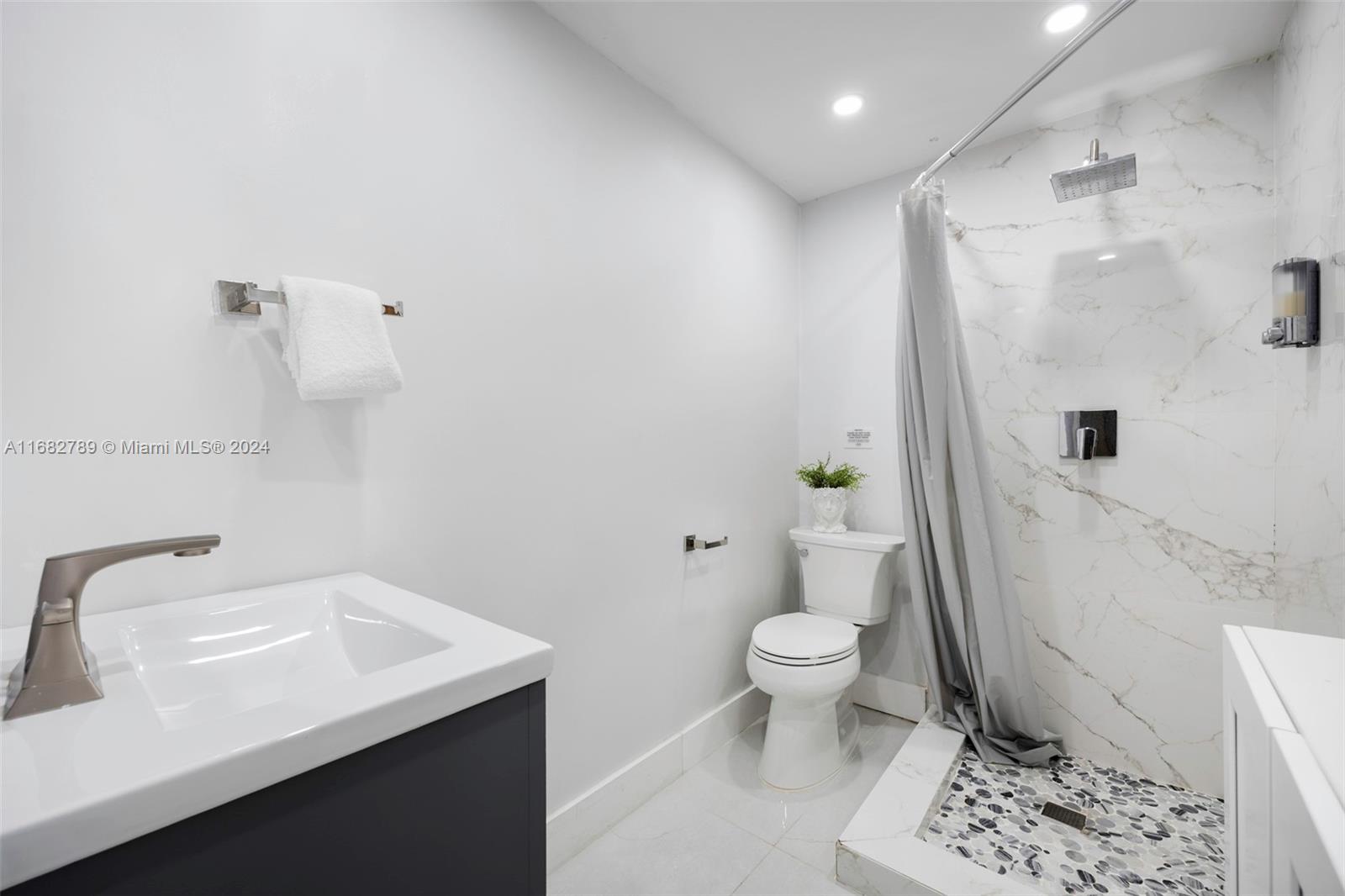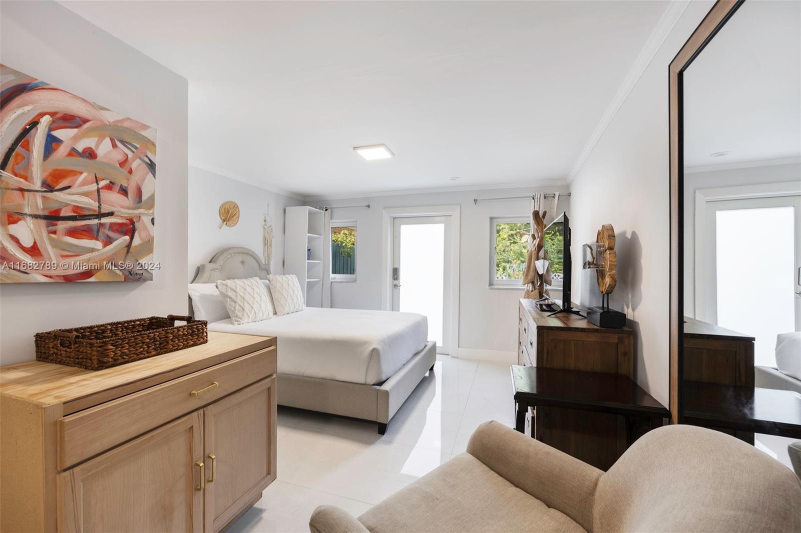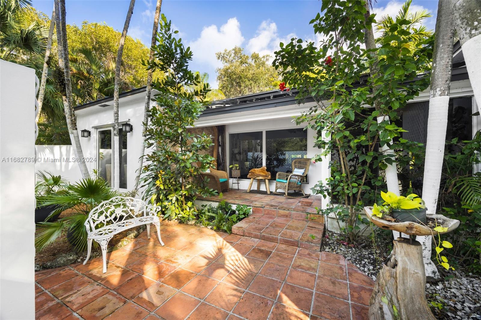 Lovely home secluded behind a tall privacy hedge in prestigious South Coconut Grove. Light-filled living spaces w/ vaulted, wood-beamed ceilings & floor-to-ceiling windows overlooking the lush, tropical garden. Updates include new roof & solar panels, impact windows/doors & renovated baths. Stunning new kitchen has quartz countertops, stainless appliances, cooking island & separate breakfast area. Expansive back yard is a lush oasis w/brick terrace, gazebo, captivating koi pond & ample space to add a pool. Close to shopping, dining & bayfront parks in the historic Grove village and just minutes to downtown, MIA & the Beaches.