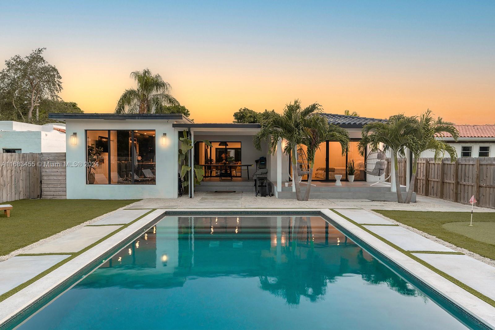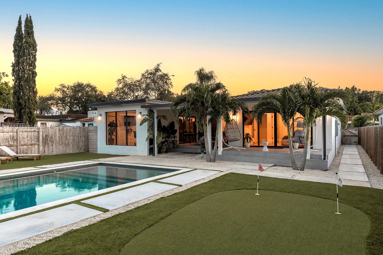Welcome to Casa Nova – the perfect home to live in! This exceptional 4BR/3BA residence has been fully renovated and features impact windows, a split floor plan, high ceilings, and modern tile floors throughout. Enjoy luxurious bedrooms, including a master suite with an over sized walk-in closet and spacious secondary bedrooms. Entertain with ease in the formal living and dining areas, plus a family room that opens to a custom kitchen and a stunning marble island. The upgraded bathrooms feature elegant marble tile and glass showers. Step outside to your private oasis, complete with mini-golf, a covered terrace, and a refreshing pool. The fully fenced property includes a motor court with parking for up to 4 cars.
