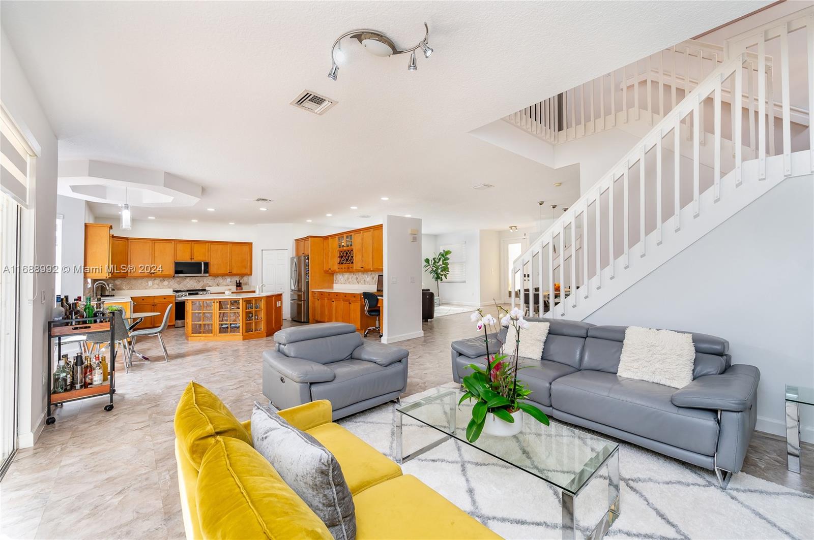 Discover your dream home in Riviera Isles, a gated community in Miramar. This elegant two-story home offers over 2,500 SF of open living space. The bright living area has high ceilings, large windows, and tile/laminate floors. The gourmet kitchen, with granite countertops and stainless steel appliances, opens to a breakfast nook and family room. The primary suite has a walk-in closet and luxury bath; three additional bedrooms offer ample space. Outside, relax on the covered patio and landscaped yard. Community amenities include a resort pool, courts, fitness center, and trails. Near top schools, shopping, dining, and highways—this home blends luxury and convenience.