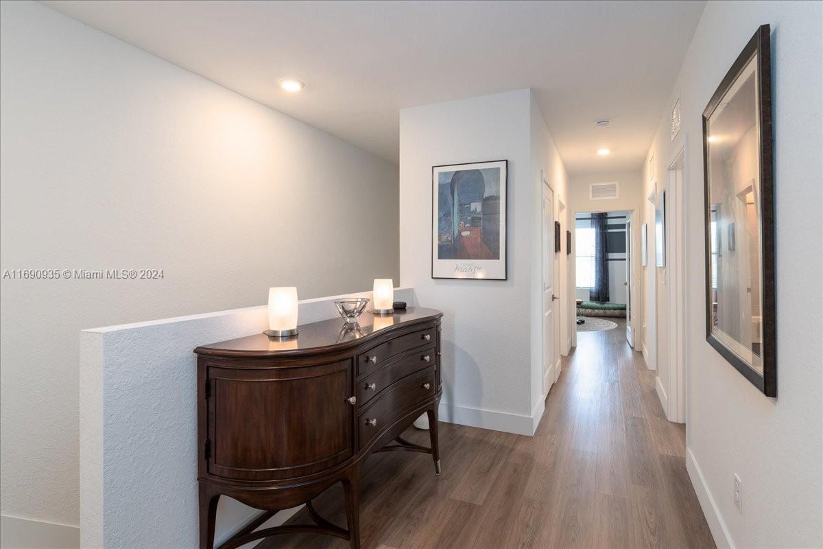 Discover this beautiful corner/end unit with REAL HURRICANE PROOF WINDOWS & DOORS, beautiful landscape community of 45 units. QUICK MOVE-IN, AS FAST AS 2 WEEKS OR FIRST WEEK OF JANUARY. Entering the main entry, you will find an open floor plan. A kitchen with quartz countertops, spacious island, custom cabinetry, 2 extra-large pantries and a powder room. Upstairs, a spacious master with en-suite bathroom and a large walk-in closet. Three additional bedrooms and a second bath with tub/shower combo are located upstair. The laundry room with Wirlpool washer and dryer is also located upstairs. The private community offers a heated swimming pool with cabana and ample of guests parking. Open house every week-end, 12-2:30 PM. Come and see this townhouse in person and learn more about flexibility.
