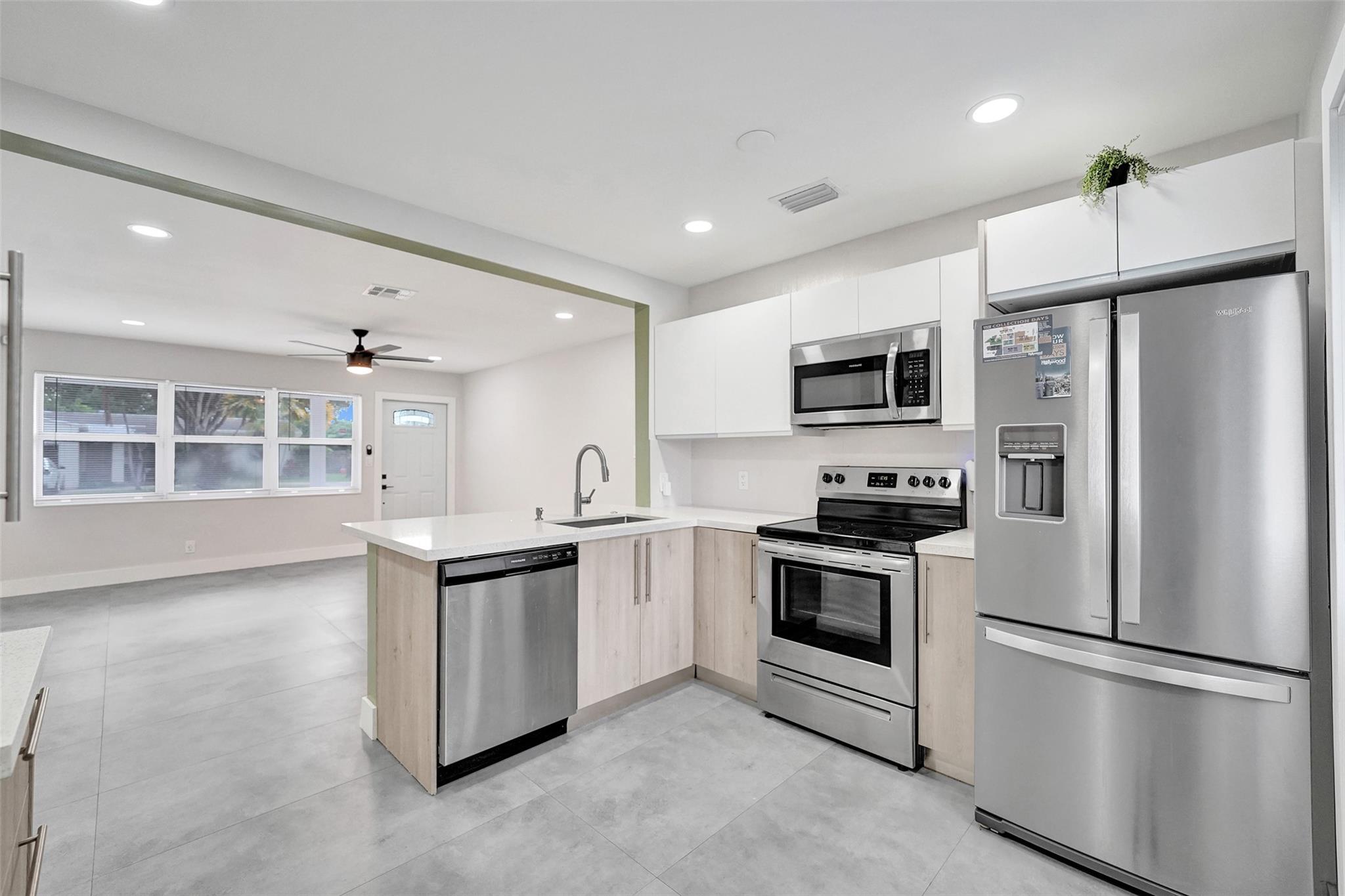 Fully renovated 3 Bed, 2 Bath POOL home in East Hollywood! Brand new Metal roof & Impact windows. This home is move in ready. Beautiful kitchen with high end cabinetry and stainless appliances. Split floor plan with large bedrooms. Two modern bathrooms. Master has an en-suite. Stylish tile flooring throughout. Full laundry room inside the home, could be used as a possible office or dining room. New electric panels & wiring. Recessed lighting and modern fixtures. Large backyard with lots of room to enjoy the pool deck and green space! Salt water pool. Fully fenced. Large shed. Gutters around the home. Tankless water heater. Security system and lighting. Home was freshly painted inside and outside. Quiet neighborhood. Great location to i95, airport, Hollywood Beach boardwalk and restaurants!