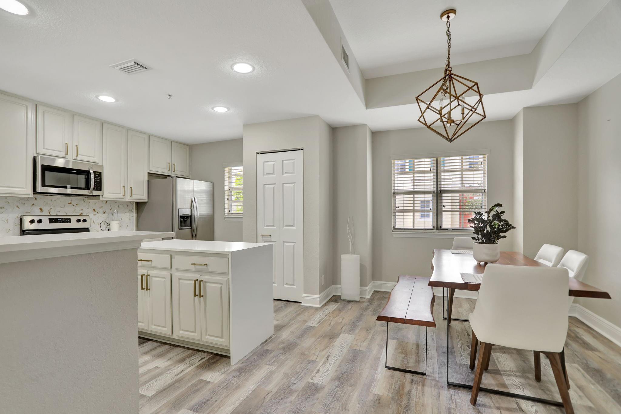 Move in ready 3 story CORNER townhouse. No assessments, HOA has great reserves! Home boasts an elegant kitchen with quartz counters, spacious rooms with ample closets, tile/LVP floors, high ceilings and lots of windows allowing natural light. Garage with added storage. Home equipped with sprinkler/alarm systems. Low HOA fee includes cable, fiber internet, landscaping, use of clubhouse, oversized pool overlooking stunning lake, fitness center. Pet friendly/Investor friendly. Owner can live upstairs rent downstairs. Community sits across a park with tennis courts and soon to be pickleball courts, a yoga studio, a preschool and lots of restaurants and Publix a short walk away. Short drive to beach. Your dream home awaits!