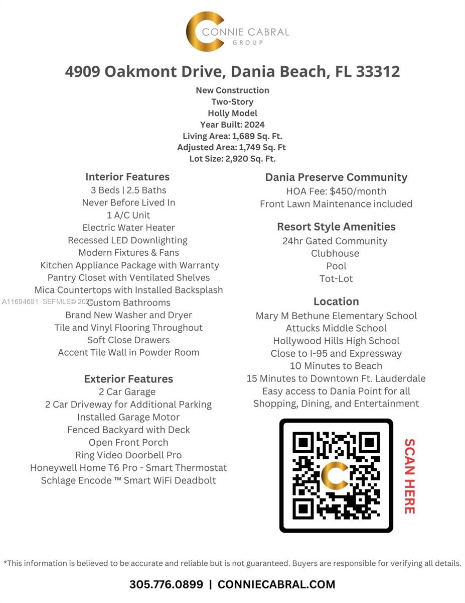 WELCOME TO DANIA PRESERVE, DANIA BEACH'S NEWEST COMMUNITY. THIS HOME OFFERS 3 BEDROOMS, 2.5 BATHROOMS, GATED COMMUNITY, OPEN CONCEPT LIVING, HIGH END FINISHES, PLENTY OF NATURAL SUNLIGHT, AND A FENCED IN BACKYARD. SITUATED CLOSE TO I-95, EXPRESSWAY, AND DANIA POINT WITH ACCESS TO ALL SHOPPING, DINING AND ENTERTAINMENT. 10 MINUTES TO BEACH AND 15 MINUTES TO DOWNTOWN FT LAUDERDALE. PERFECT FOR ANYONE LOOKING FOR A RARE OPPORTUNITY WITH EASY ACCESS TO ALL THAT BROWARD COUNTY HAS TO OFFER.