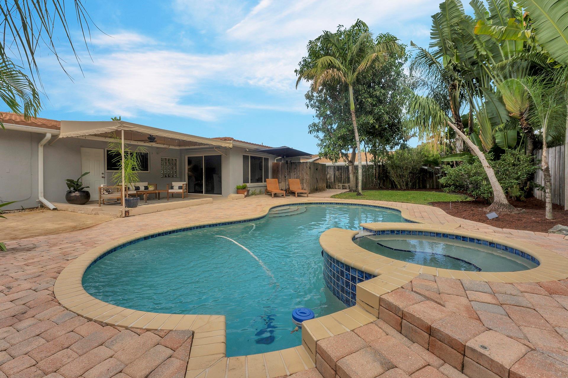 Say "HELLO" to a Good Buy.. A attractive 2bed/2bath single family situated in desirable Coral Hills- East Fort Lauderdale ... Features a dazzling NEW KITCHEN with quartz waterfall countertops, wetbar, updated bathrooms, large laundry room, NATURAL GAS, open concept & roomy floorplan, extended master bedroom suite with direct backyard views, dining/living room combination, natural lighting thru out. A private backyard surrounded by lush landscaping and an exquisite mango tree, a pleasant outdoor ambiance to entertain guest, covered patio with direct pool view.. a potential 3rd bedroom conversion if desired, Highest elevation area in FTL, NO FLOOD INSURANCE REQUIRED, quiet & friendly neighborhood, Minutes to BEACH less 1.4 miles away, Great Schools & Shopping nearby, ACT FAST THIS WON'T LAST