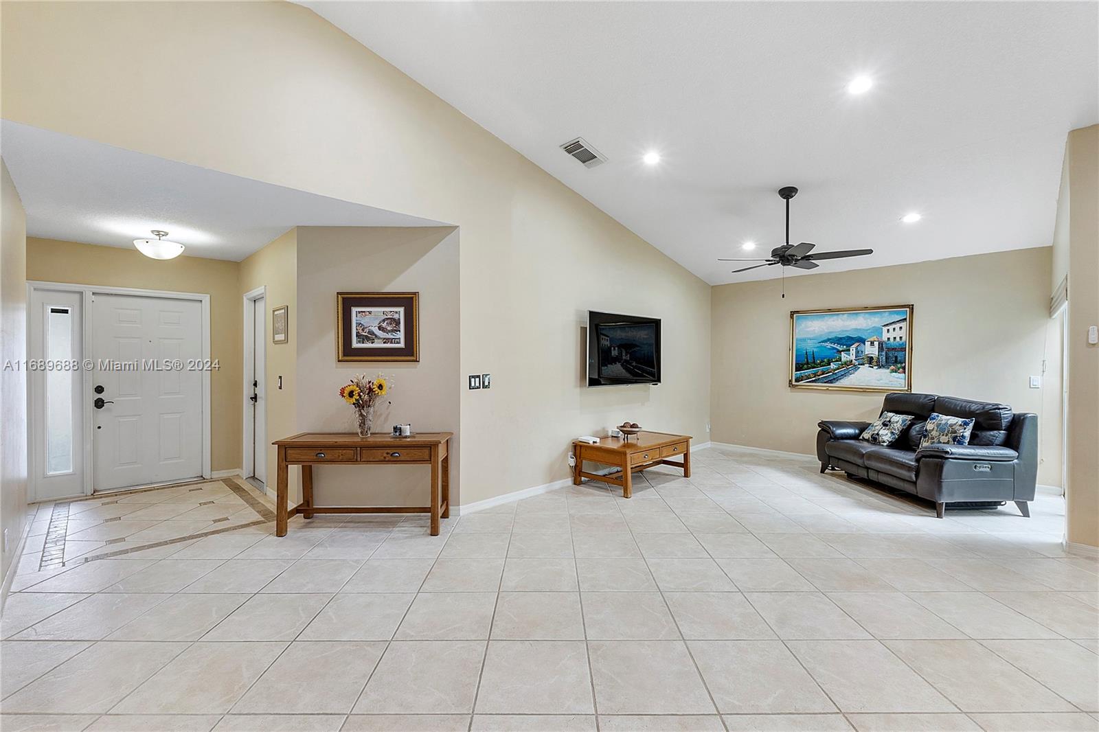 Beautiful 3 Bed 2 Bath Home With 2 Car Garage Located In Prestigious Gated Maple Ridge In The Heart Of Hollywood. Foyer Entrance. Living Room/Dining Room/Family Room. Tile In Common Areas, Laminate Wood Floors In Bedrooms. This Home Features Recessed Lights, Large Open Layout With Lots Of Natural Light. Large Updated Open Kitchen With Granite Countertop, Wood Cabinets With Pull outs And SS Appliances. Large Primary Suite With Walk-In Closet, Volume Ceilings & Ceiling Fan. The En-Suite Bathroom Has Double Vanity, Custom Large Shower With Free Standing Tub With Frameless Enclosure. 2 Other Bedrooms Have A Closet, Laminate Wood Floors, & Ceiling Fan. Upgraded Hall Bath With Wood Vanity & Push Button Toilet. A/C 2022. Screened Patio. White PVC Privacy Fence. Lavish Landscape & Community Pool.