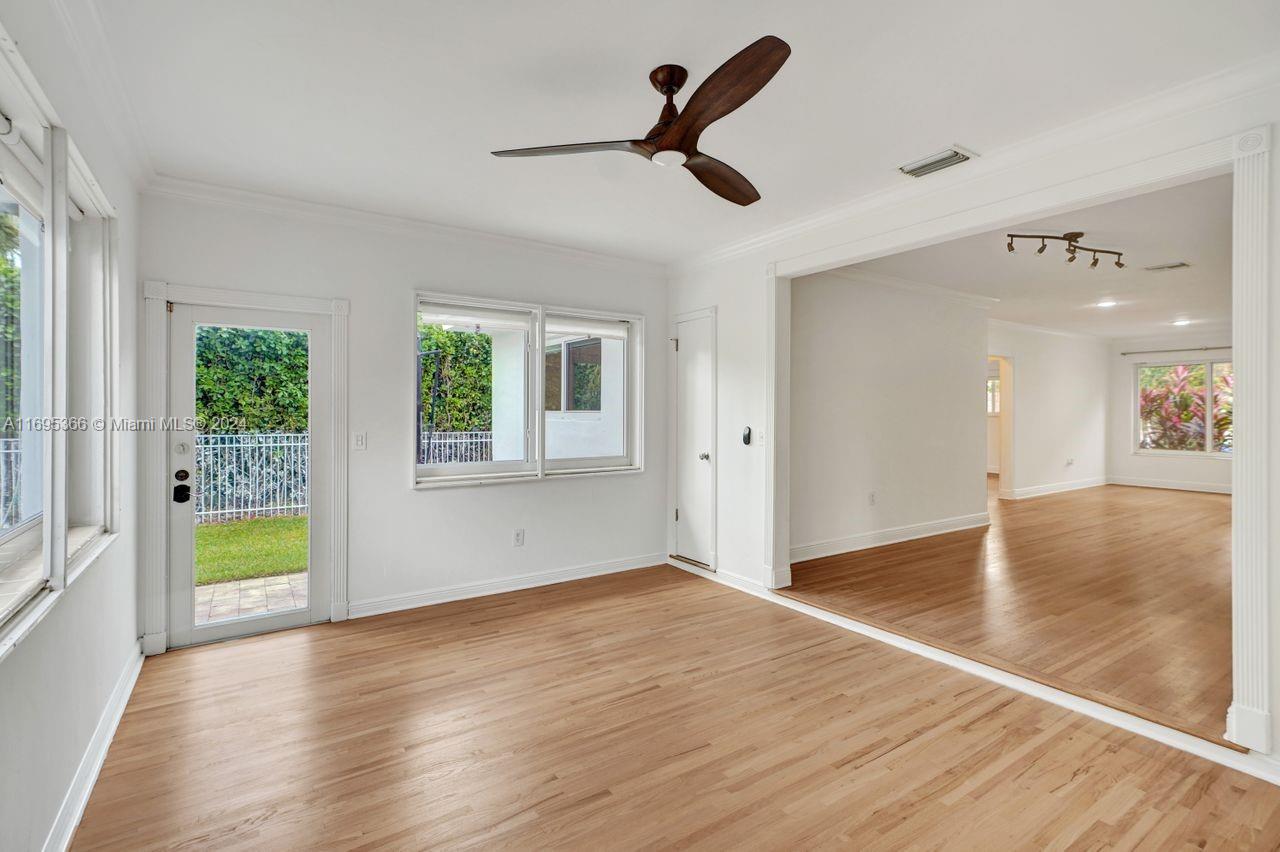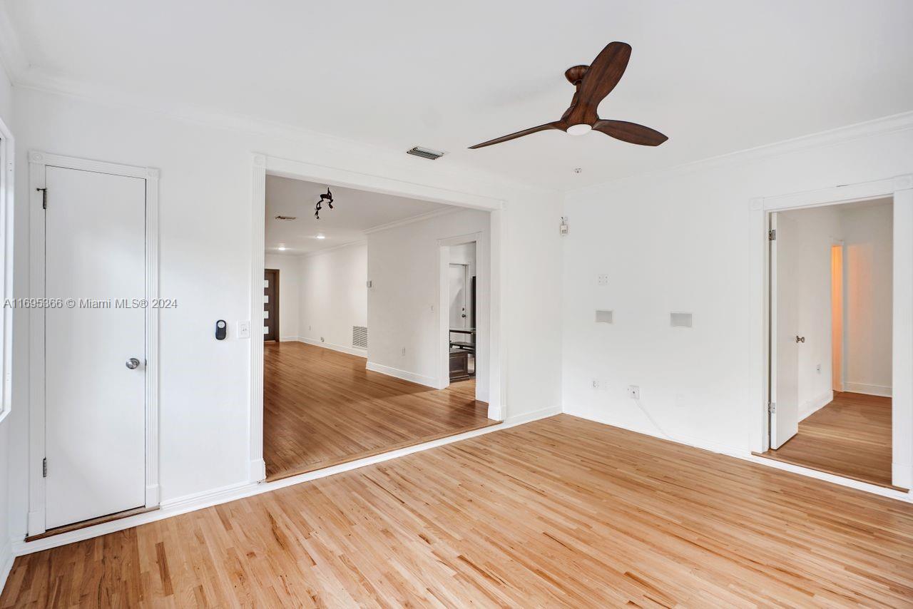 This 3-bedroom, 2-bathroom, 1,998 sq ft charming home is located on a quiet tree-lined street in sought-after South Gables. The bright and airy split-bedroom floorplan boasts a blend of classic details and modern potential, with spacious living areas, family room, updated bathrooms, high impact windows/doors, and beautiful polished hardwood floors. The sizeable kitchen offers a pantry closet, breakfast area, custom wood cabinetry and stainless-steel appliances leading directly to a one car garage. Crowning this lovely home, perched on the area's highest elevation, is an inviting private backyard with a large stone paver patio, perfect for entertaining and space for a future pool. Make this gem yours and live in close proximity to top rated schools, fine dining, shopping and entertaining.