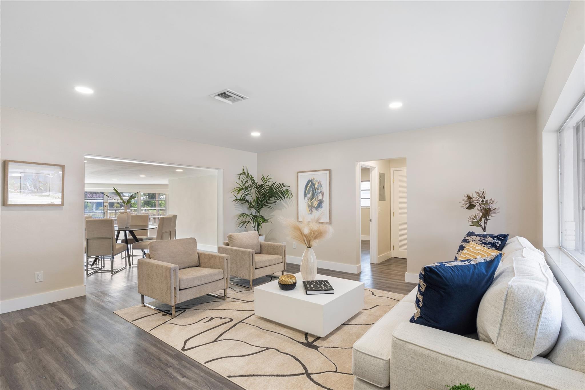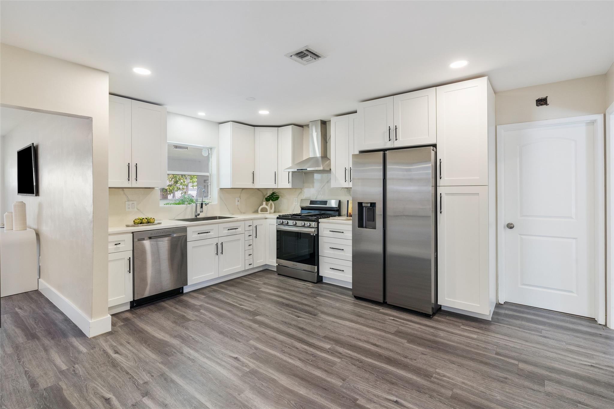 NO HOA! COMPLETELY REMODELED, UPSCALE 3 BEDROOM 2 BATH GARDEN ISLES FAMILY FRIENDLY WATERFRONT HOME. FEATURED WITH FRUIT TREES, AVOCADO, FIG AND MANGO. NEW METAL ROOF 2024. NEW KITCHEN, STAINLESS APPLIANCES, GAS STOVE WHITE CABINETS TO CEILING. NEW SPRINKLER SYSTEM ALONG WITH NEW LAWN. WALK IN CLOSETS, LAUNDRY ROOM OFFERS TOP OF THE LINE APPLIANCES ALONG WITH A PANTRY SINK . NEWER DECK ON 75FT OF WATER. 11TH ST BRIDGE AND FEDERAL HWY BRIDGE.