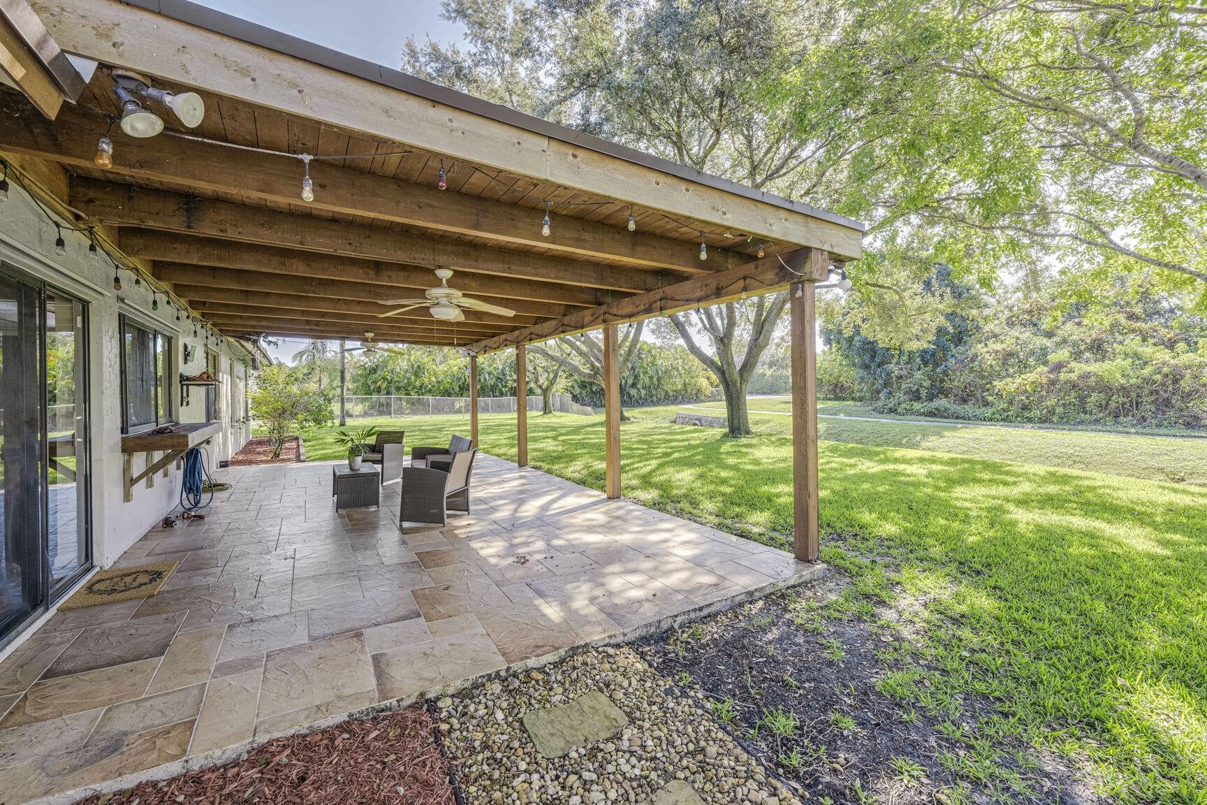 Orange Tree Homes located in the Heart of Davie. This 3 bedrooms 2 bath Home is located at the end of a cul-de-sac. The kitchen is adjacent to the family room, and both look out to an oversized roofed Patio and lush 1/3-acre lot. The sprinkler system water is fed from the canal. Included is a full house Ring alarm system. Roof was installed in 2022, A/C in 2019. Excellent Davie school district. Looking for a family home this will let you check all your boxes. No restrictions on parking a work vehicle, truck, or your boat. NO HOA!