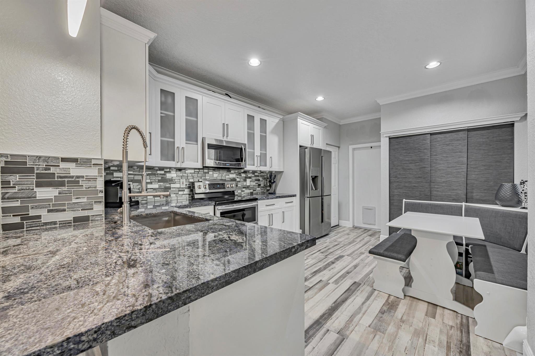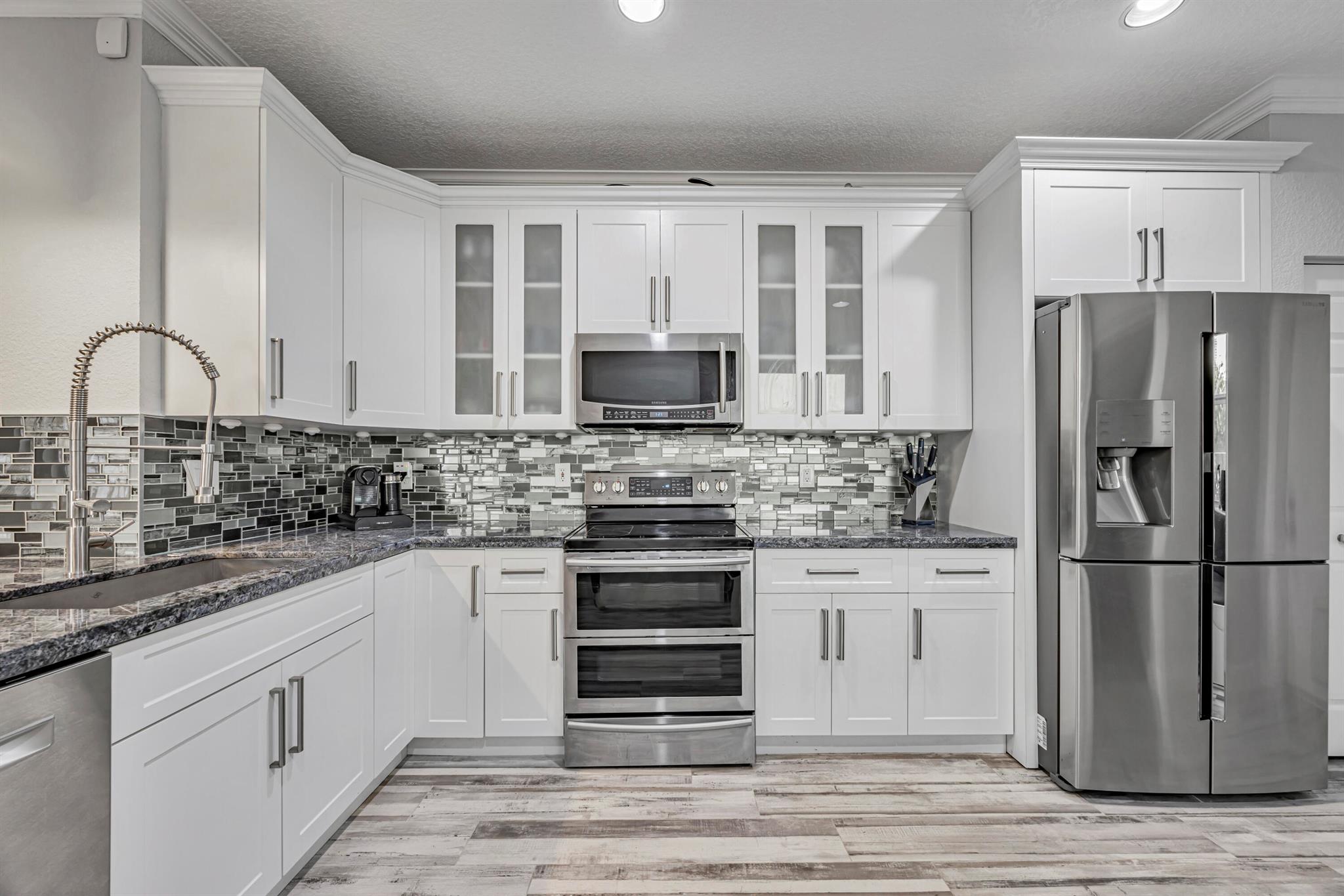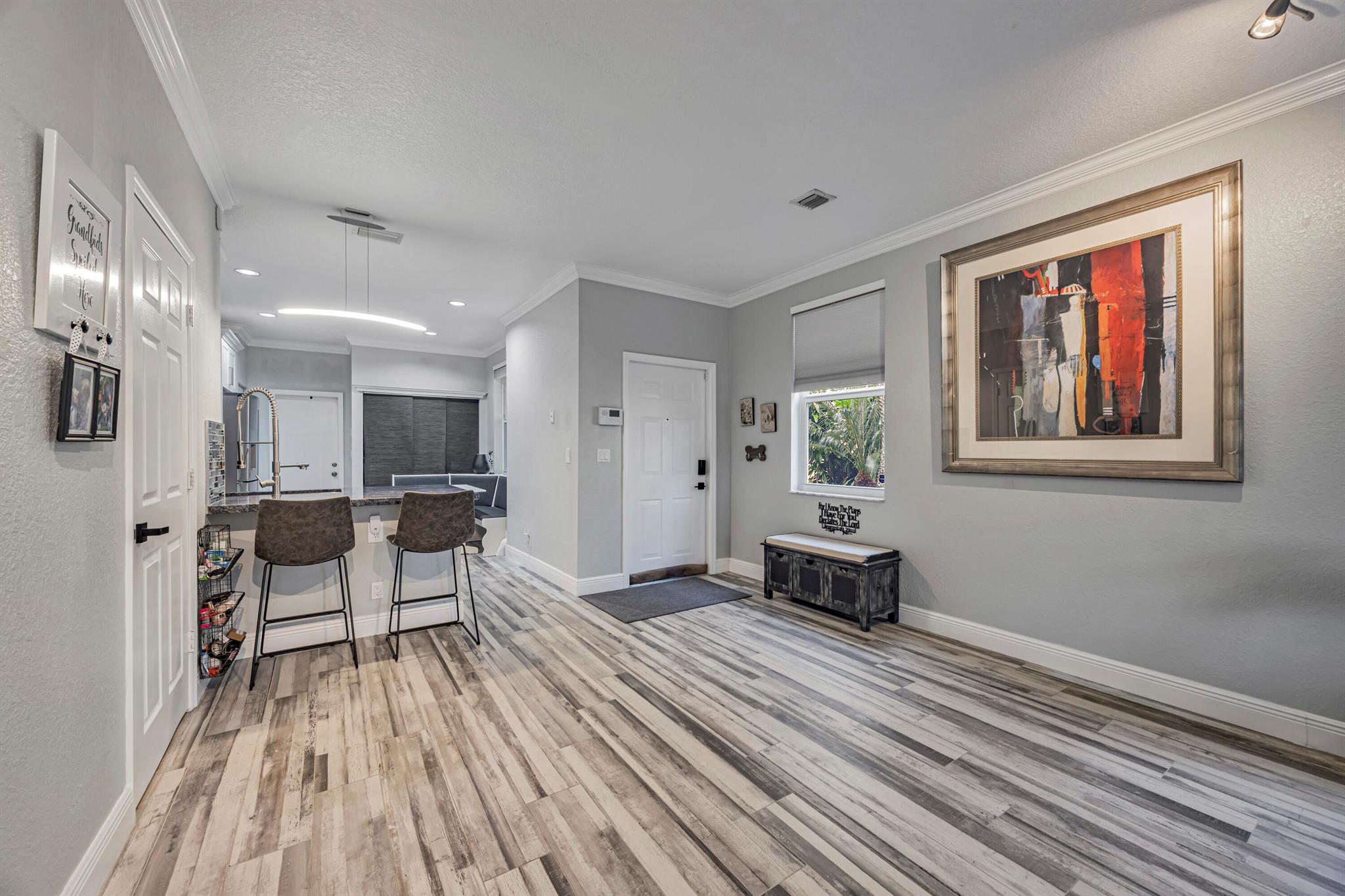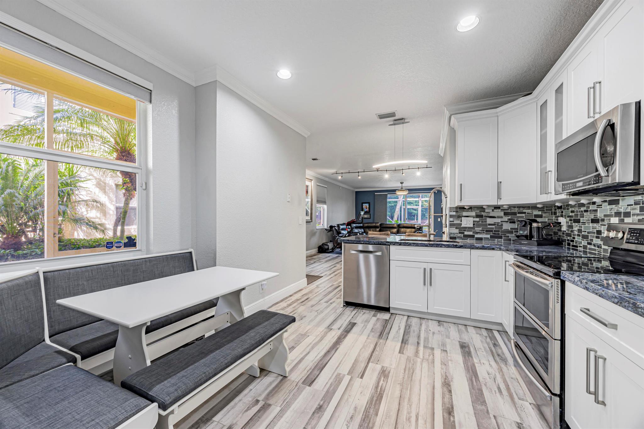 This beautifully renovated spacious 4-bedroom, 2 1/2 -bathroom townhome features a modern, fully upgraded kitchen perfect for entertaining. The home boasts being a corner unit, hurricane windows, an attached garage, and new flooring. Enjoy time on your screened patio overlooking private waterfront views with no neighbors behind. You'll enjoy both convenience and serenity. Located in a gated community, this home offers both comfort and security close to A-rated schools.