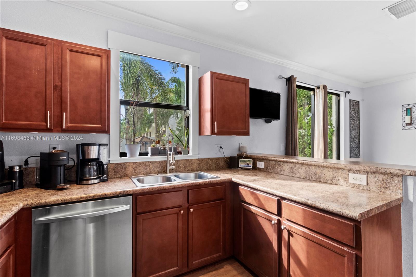 Corner unit! Low HOA fee! This beautiful Townhome is located in one of the most desired communities in Hialeah (Aragon / Bellagio) which is close to great schools (public, charters and private) major access roads like the Turnpike, I-75, Hialeah Gardens Boulevard, Okeechoobee and more. The street mall with Publix, Home Goods, Ulta and other restaurants and stores is right across the street from the community's main gate. The Townhome has 3 bedrooms, 2.5 bathrooms, spacious areas inside and outside. Primary bedroom comes with his and hers closets and double sink in the primary bathroom. Garage to park one car plus space outside to park 3 more cars. Community amenities include a beach style pool, clubhouse, exercise room, kids' park and plenty of green area with beautiful lake view!