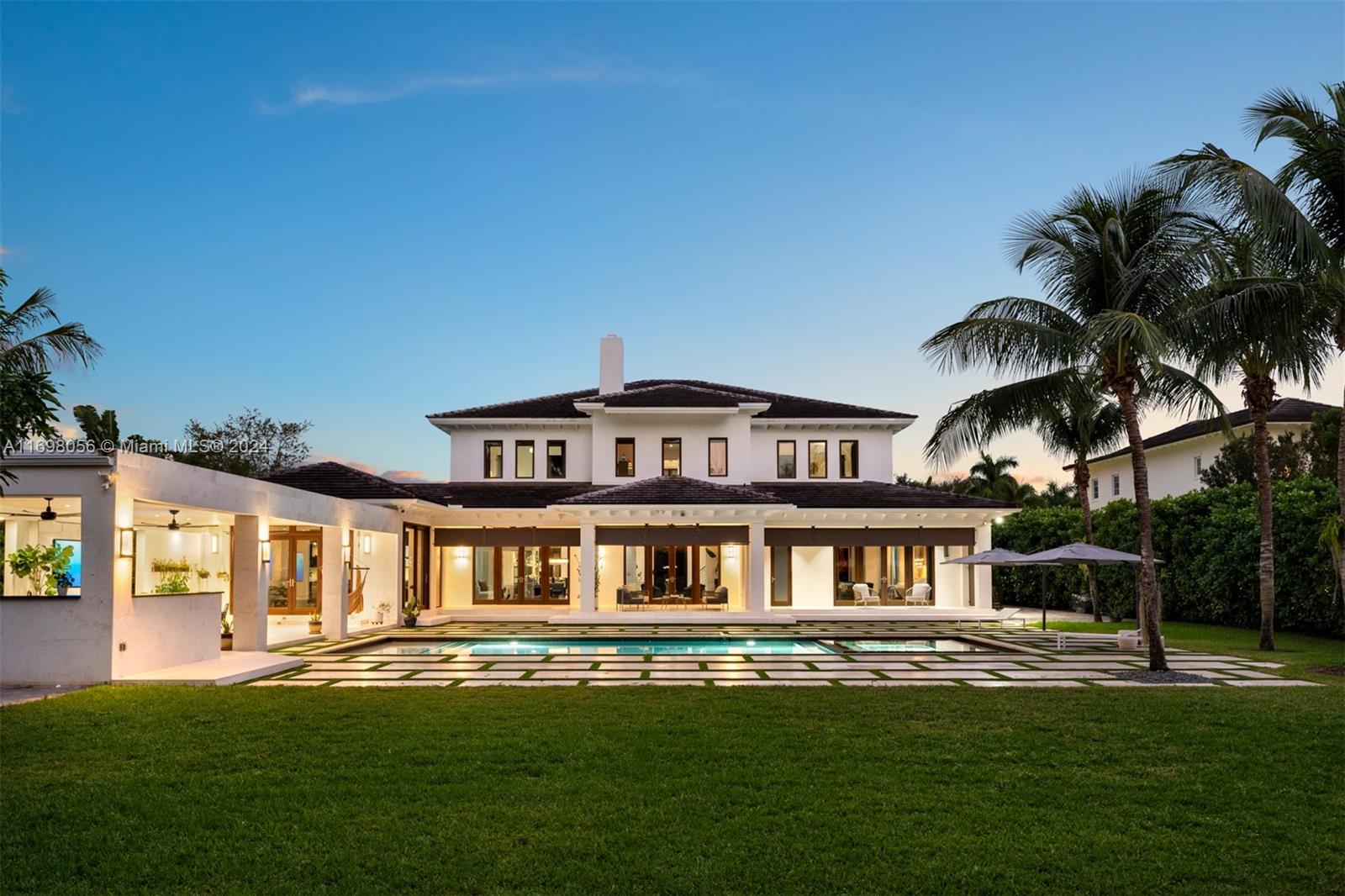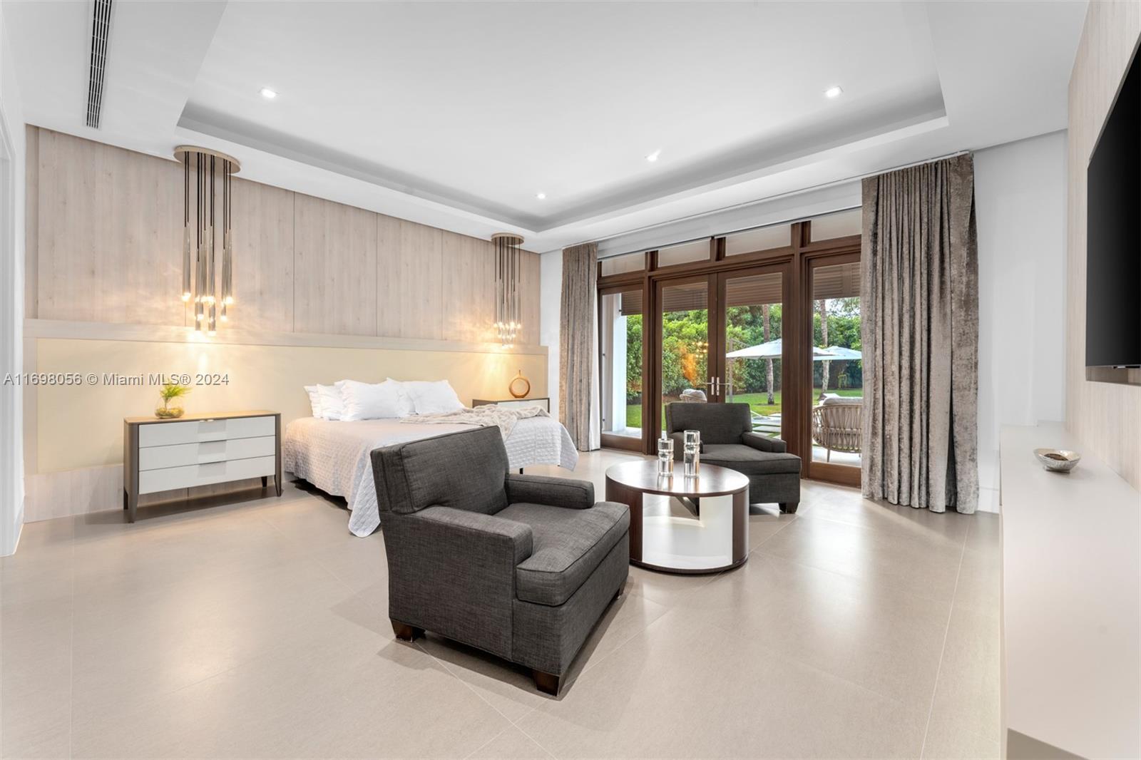Welcome to this 2-story retreat, nestled in one of Pinecrest's most sought-after locations. The residence boasts impact windows throughout, offering views of the sprawling 37,990 SqFt lot. This home features 8 BD, 9.5 BA, a 3-car garage, generous living spaces, service quarters, and versatile rooms ideal for a gym or home theater. The primary ste located on the ground floor is a private haven with a sitting area, 2 walk-in closets, a spa-like tropical bathroom, and serene views of the sparkling pool. The home’s living spaces are enhanced by a wine display and bar, soaring volume ceilings, designer lighting, and spacious terraces. Step outside to enjoy the brand-new outdoor kitchen, set in a lush backyard oasis surrounded by mature mango trees.