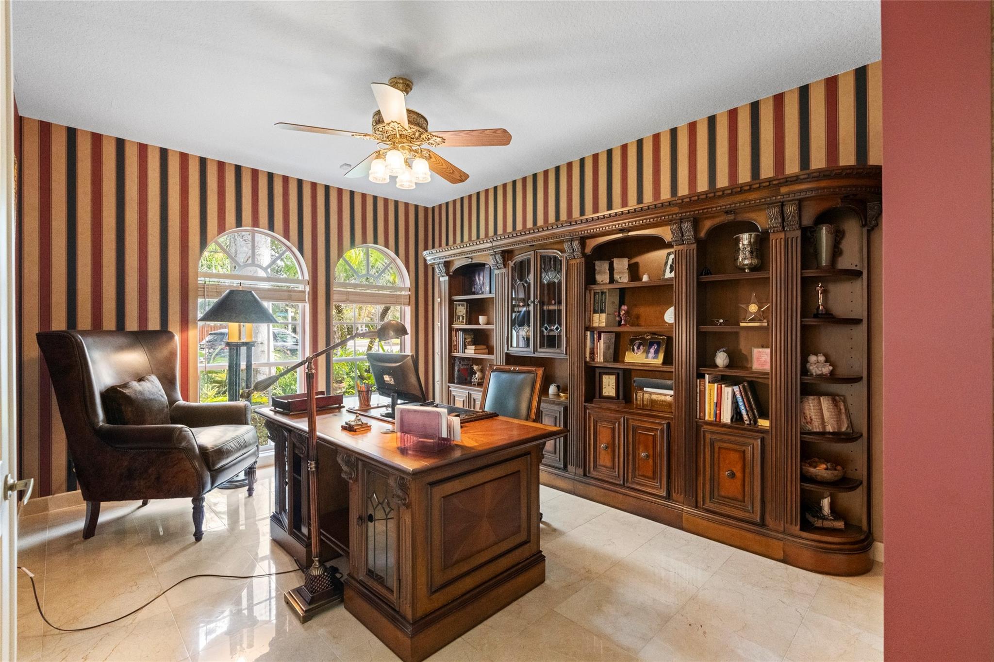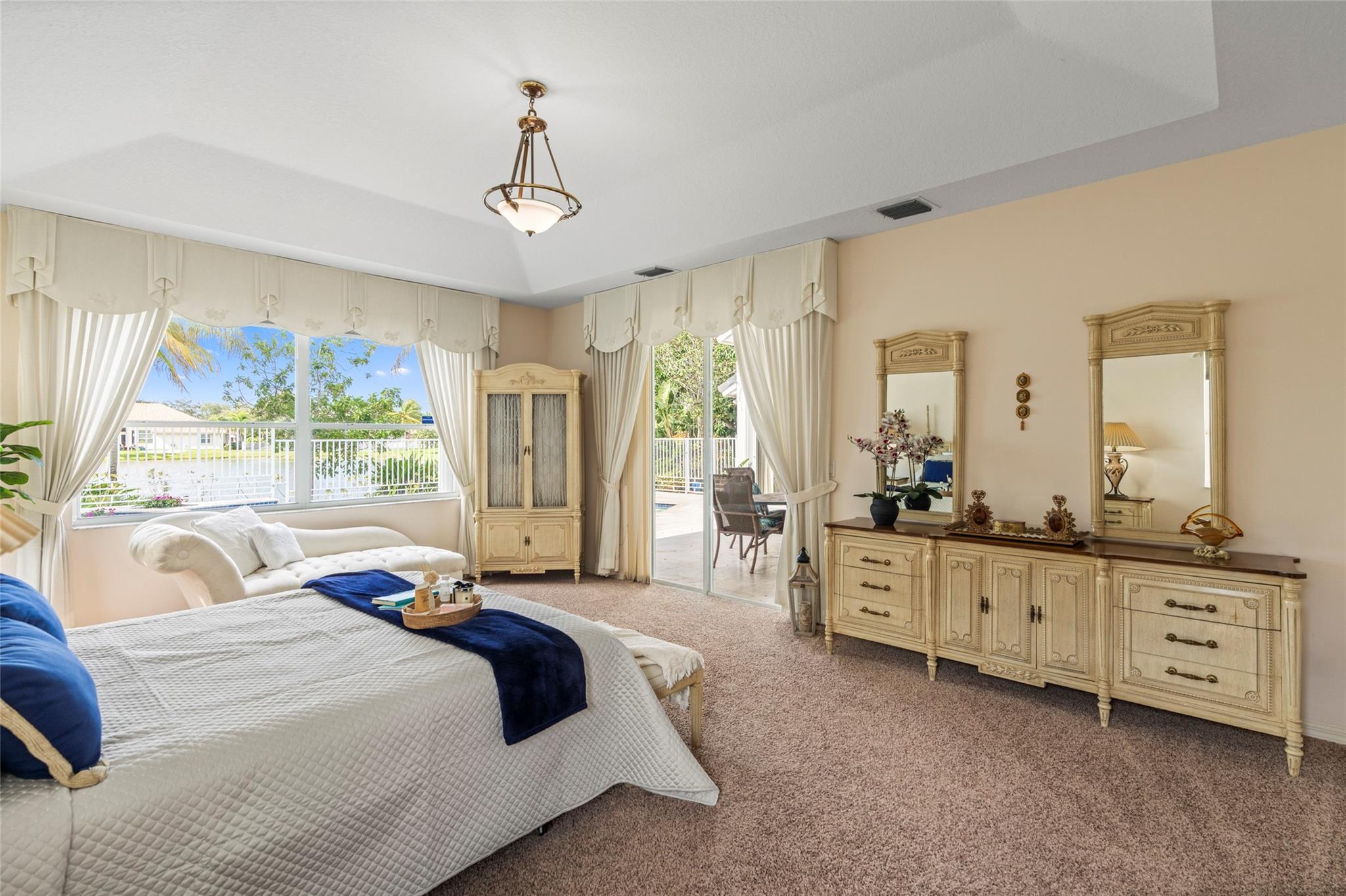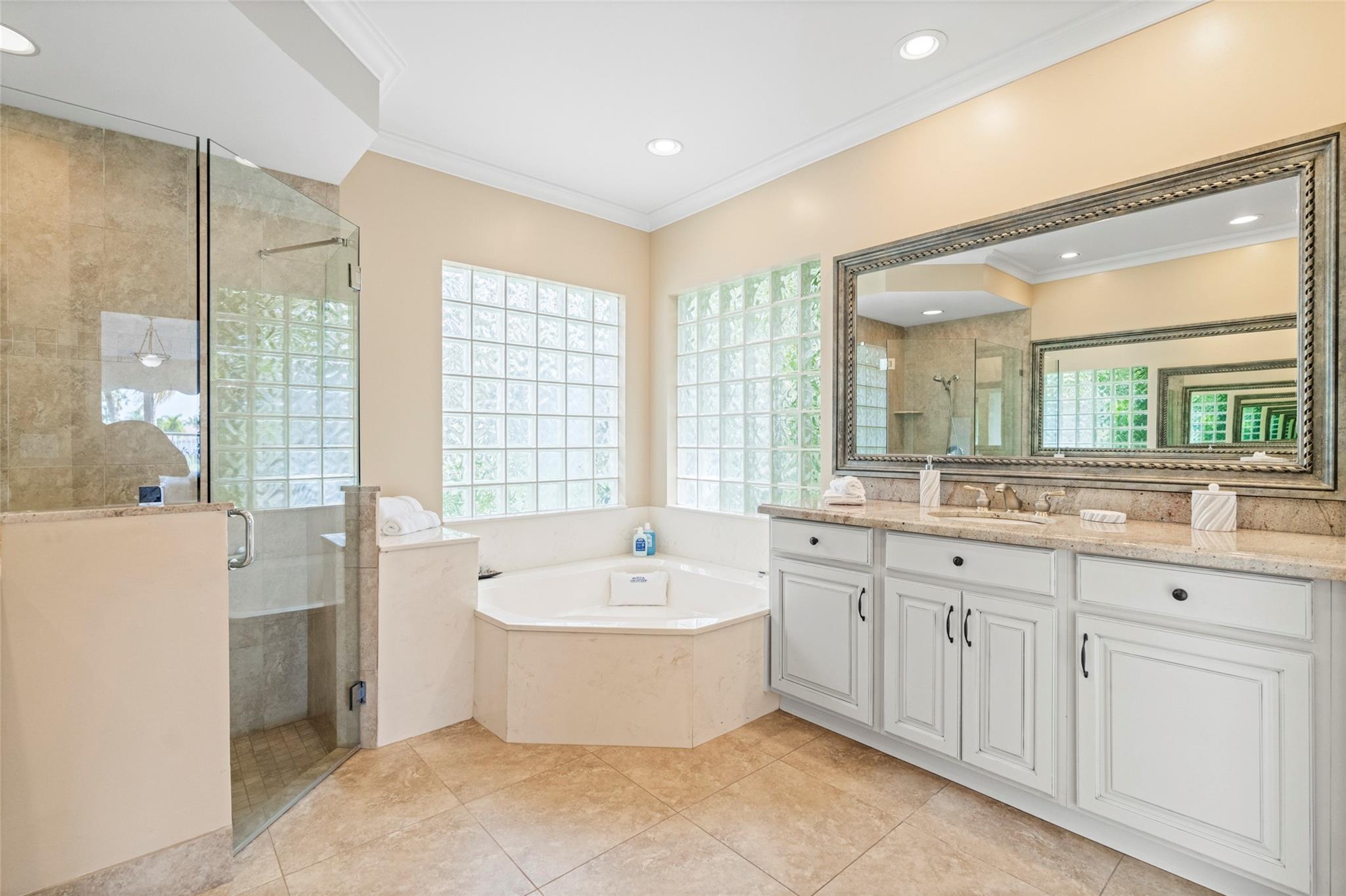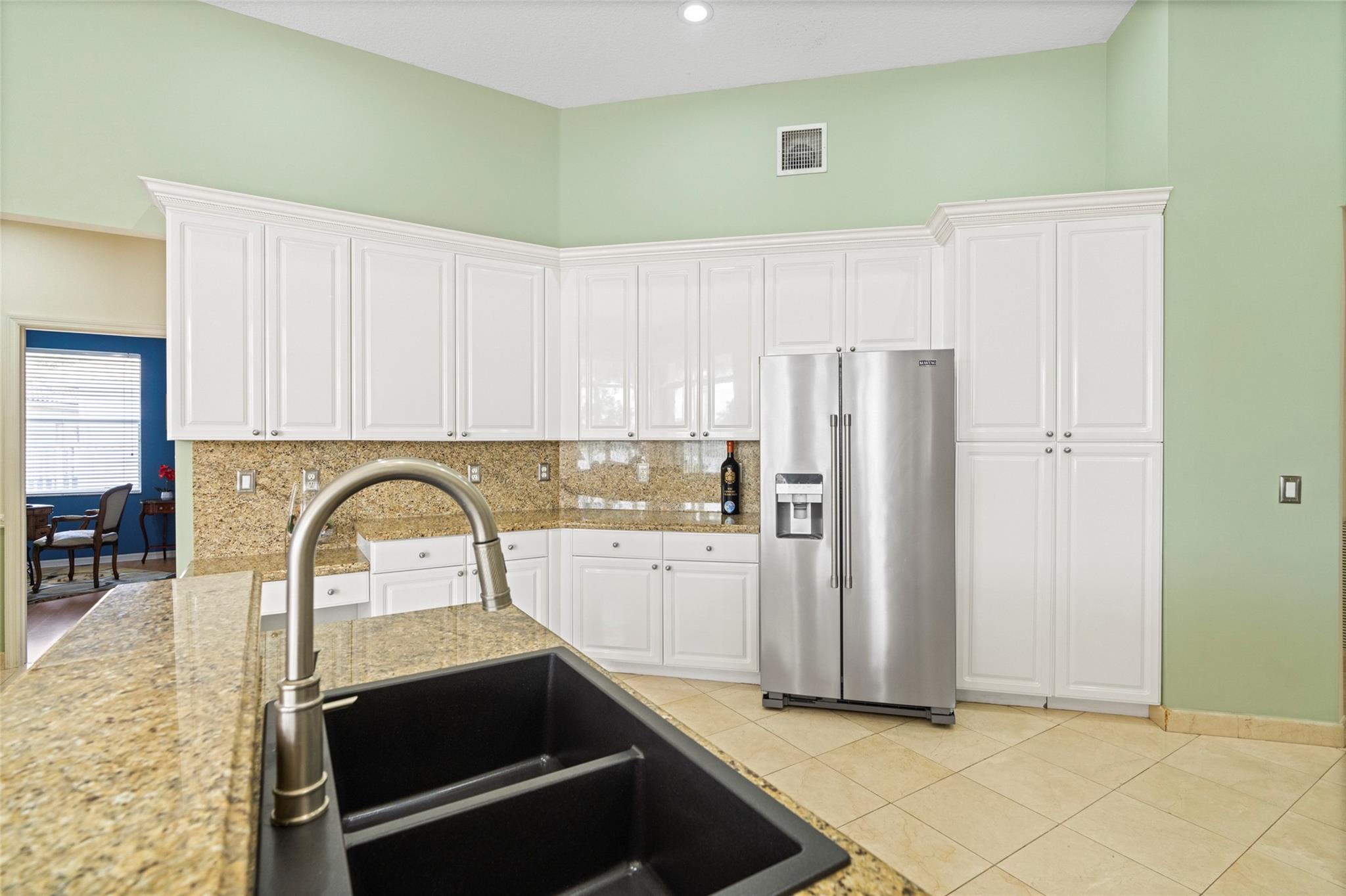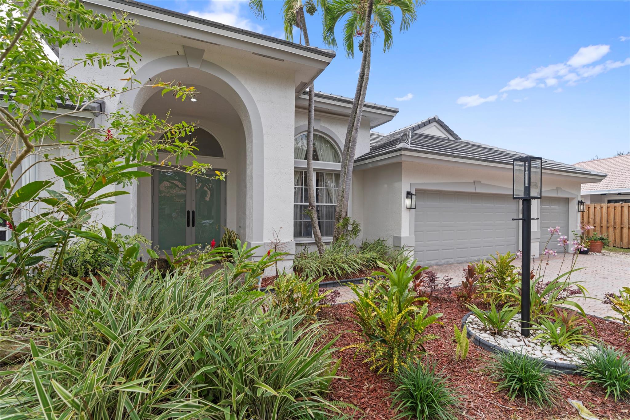 Elegant 5 BR pool home on super wide oversized lot w long lake views. New 2023 roof w 10 yr warranty. Largest 1 story plan built w spacious estate style layout & big lakeside yard. Foyer entry, volume ceilings, marble floors throughout the main living areas, big formal dining & living room, open kitchen w granite counters, elegant & modern white gloss cabinetry w pantry wall, cafe nook overlooks pool & lake. Big family room, perfect for the largest gatherings. Spacious master suite & bath w walk-in closets, 5th BR/den & 1/2 BTH, split bedroom wing, good sized BR# 3-5 & 2 baths. Free form pool w raised spa, sun deck w patio awning, tropical landscaping & fruit trees. Walk to A rated elementary school. Gated community w tennis, playground, all lots are a minimum of 90 ft wide, low HOA dues.