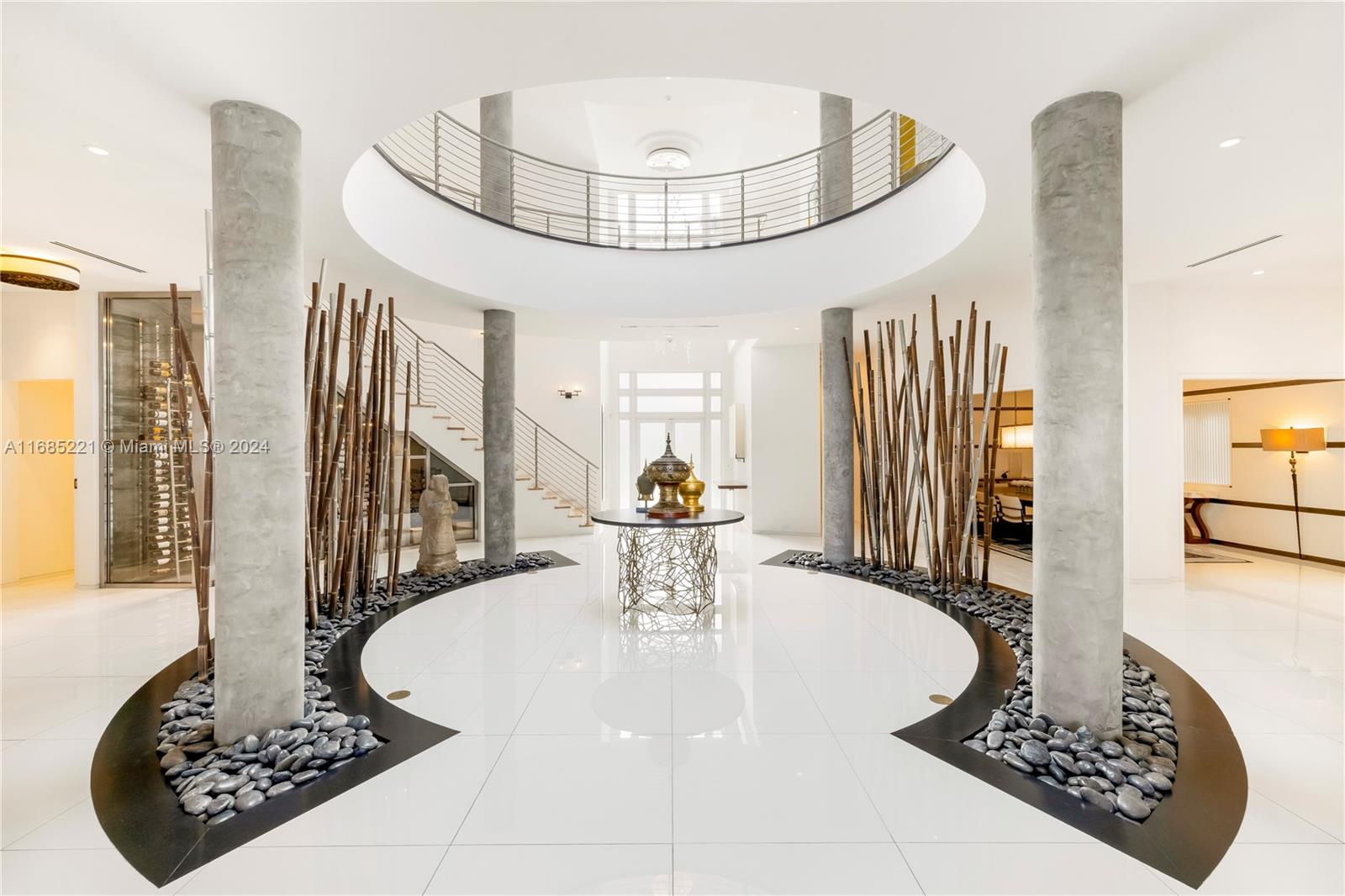 Discover this spectacular contemporary masterpiece on the exclusive guard-gated Hibiscus Island, just minutes from South Beach and Downtown Miami. Offered fully furnished, this gated waterfront home boasts professional decor and meticulous finishes throughout. Step inside to find dramatic double-volume ceilings and expansive floor-to-ceiling glass, offering breathtaking panoramic water views. The open, light-filled spaces are designed for modern living, featuring advanced surround sound and custom lighting systems. With an 80-foot dockage for your boat, you can easily access the beautiful waters of Miami. Enjoy a stunning wine cellar, an elevator for convenience, and a rooftop terrace perfect for entertaining.