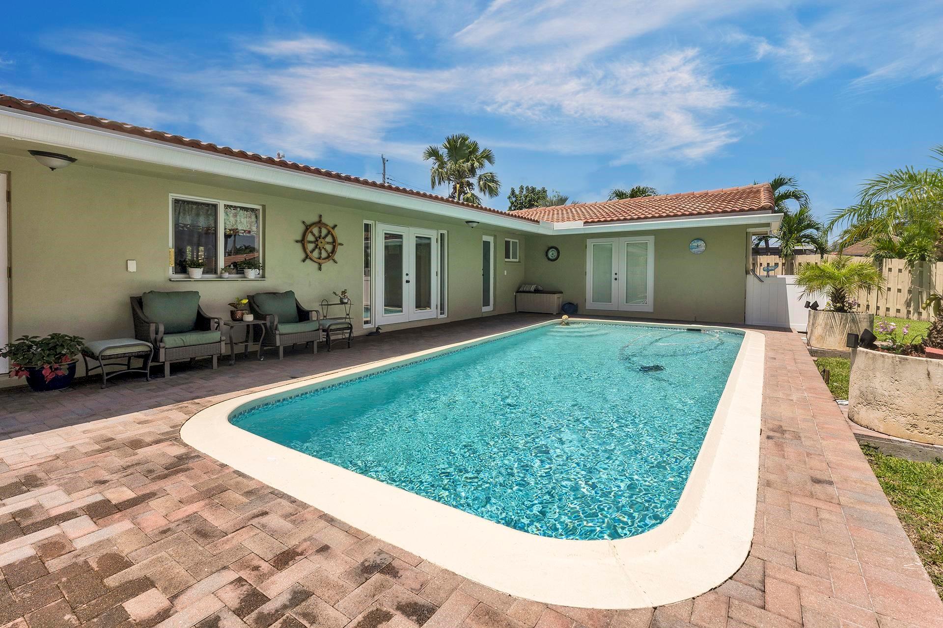 This home has it all! Coral Ridge Isles 4-bed 2-bath corner lot pool home with ocean access. Features: Large 10k sq/ft lot, Impact Windows/Doors, Generac Whole House Standby Generator powered by Natural Gas, 2015 S-Tile Roof, 14'x28' Pool, 20' Dock with additional deck sitting area, Fully Fenced with additional boat/RV Storage area, 5 fixed bridges 6' clearance at high tide. Interior features: Beautiful Kitchen with White Shaker Cabinetry, Complementing Quartz Countertops, White Subway Tile Backsplash, Farmhouse Style Sink, Large Kitchen Island with wood Boos Block Top, Stainless Steel Appliances, Wine Cooler, Stylish Master Bathroom and Cabana Guest Bathroom, Tankless Water Heater, AC 2019, Wood-look/Ceramic Tile Flooring, Plantation Shutters throughout, Cast Iron Pipes Replaced.