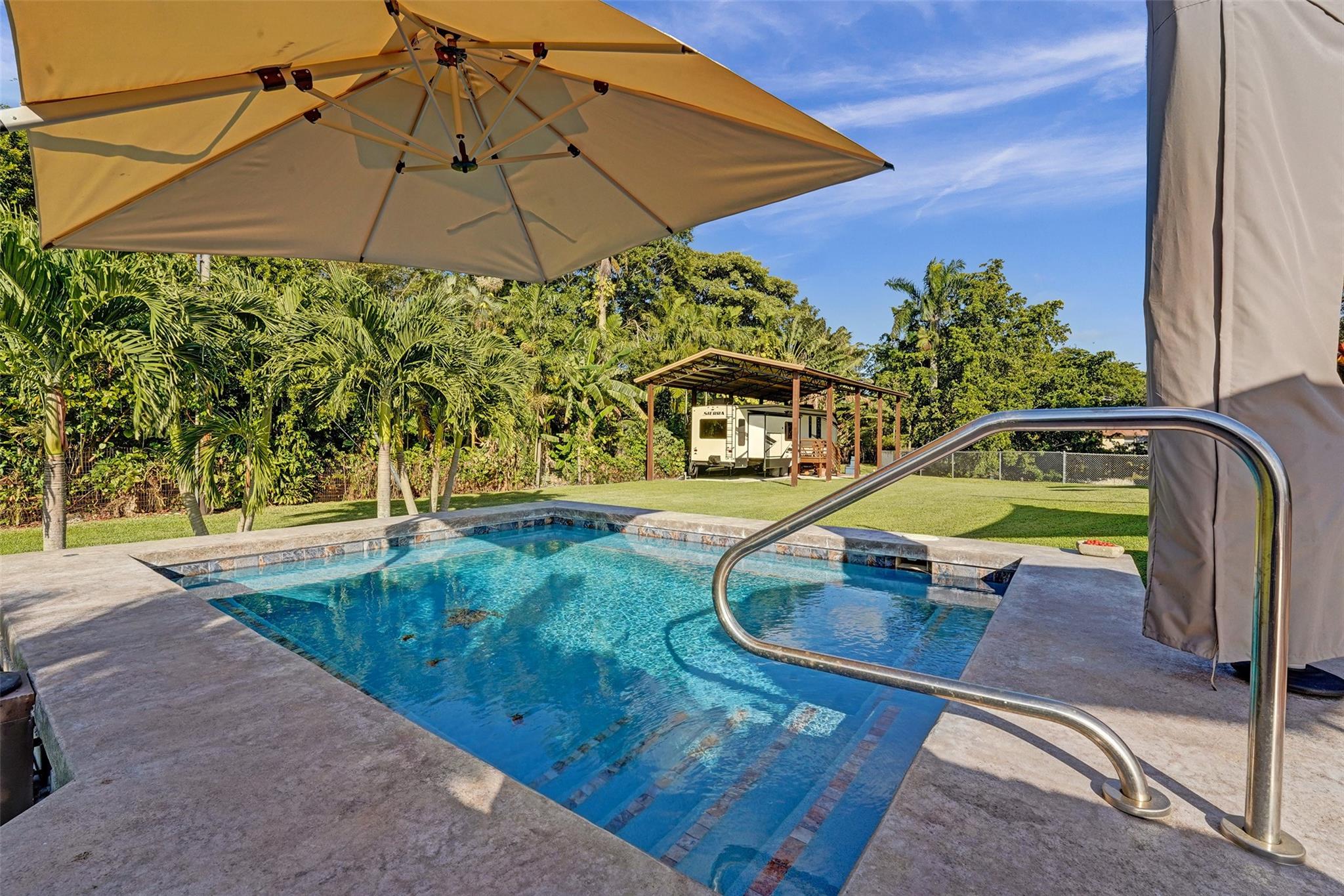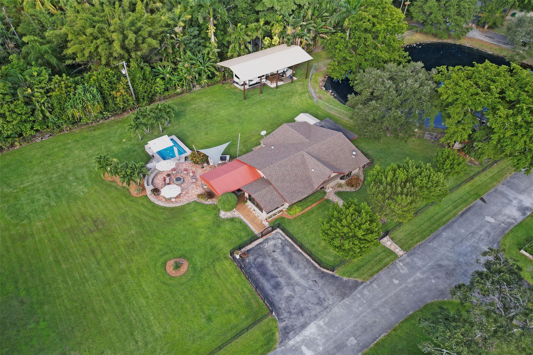 Prime Davie land for sale 1.5 acres with NO HOA and zoned Agriculture, featuring a private pond and gated driveway. With ample room to expand or add a second floor, the property offers limitless possibilities. Recent upgrades 2024 include a brand-new roof, 48-foot RV storage pole barn, and enhanced plumbing in the luxurious primary bath with a jet Jacuzzi tub. Enjoy year-round relaxation in the heated and cooled salt water pool, installed in 2020, and the new outdoor shower with hot water. The 2020 kitchen remodel boasts custom cabinetry, quartzite countertops, and new tile floors. AC and hot water heater are both recently upgraded. Security system with 6 exterior cameras as well as all impact windows and doors. Serenity, space, and style—this home is a must-see! 42 Foot RV included!