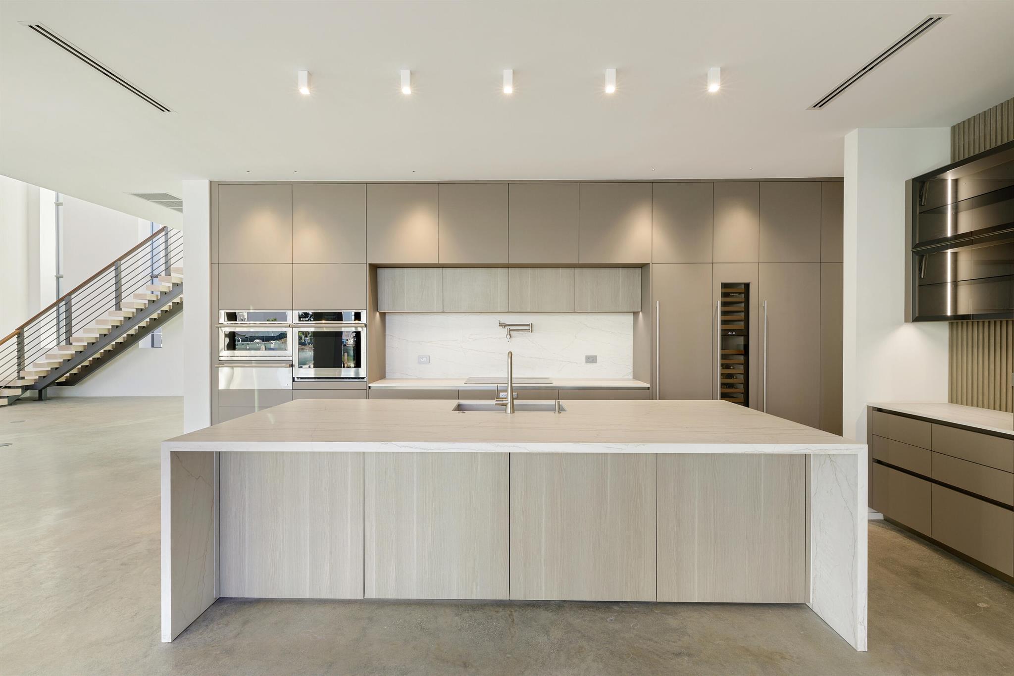 Discover refined living in this stunning modern 5-bedroom, 4 full and 2 half-bath waterfront masterpiece located in Lauderdale-by-the-Sea on gated Terra Mar Island. Developed by Bricker and designed by IntelAE, this residence boasts 75 ft of waterfront with luxury yacht docking, a saltwater pool and spa, and an outdoor kitchen. Upon entering, you are greeted with soaring 25-foot ceilings that enhance the sense of grandeur and expansiveness. This solar-powered home offers energy independence and features high-end Italian finishes, motorized shades in every bedroom, dual primary suites, a coffee bar, and wine fridge, further elevating its private resort-style feel.