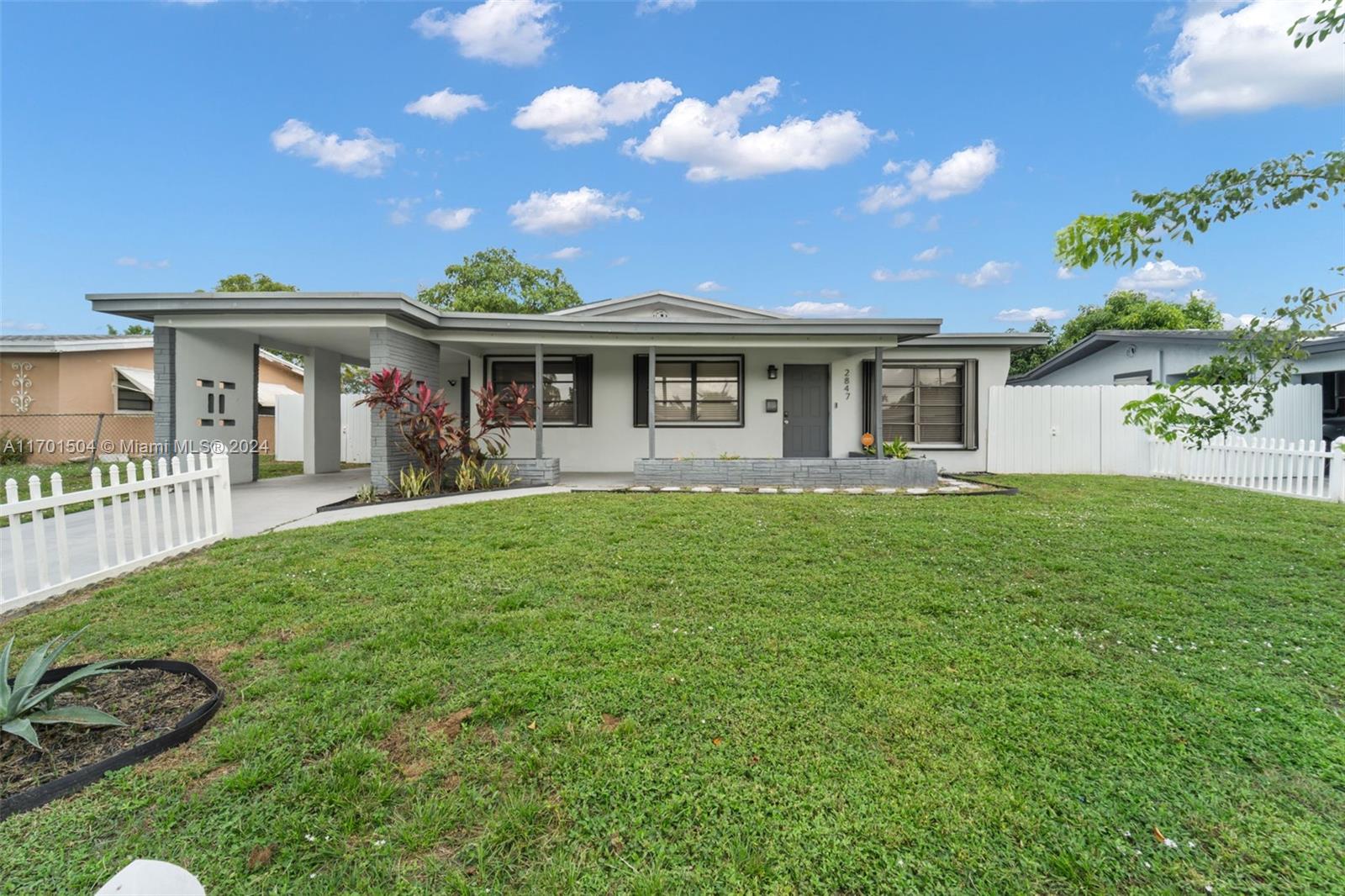 Tastefully Renovated Home in Melrose Manor, Ft. Lauderdale. This fully updated home in the desirable Melrose Manor features paid-off solar panels for energy savings and brand-new plumbing throughout. New Shaker style kitchen cabinets with Quartz Counters, All Newer appliances, Large Laundry Room with Pantry Storage, Newer Washer and Dryer and a New fence offers privacy and security. Enjoy fresh fruit from your own two mango and two avocado trees. Accordion shutters on all windows provide hurricane protection. High-tech Smart home Vivint cameras, Alarm and Doorbell included. Move-in ready and perfect for modern living, this home is a rare find. Schedule your showing today!