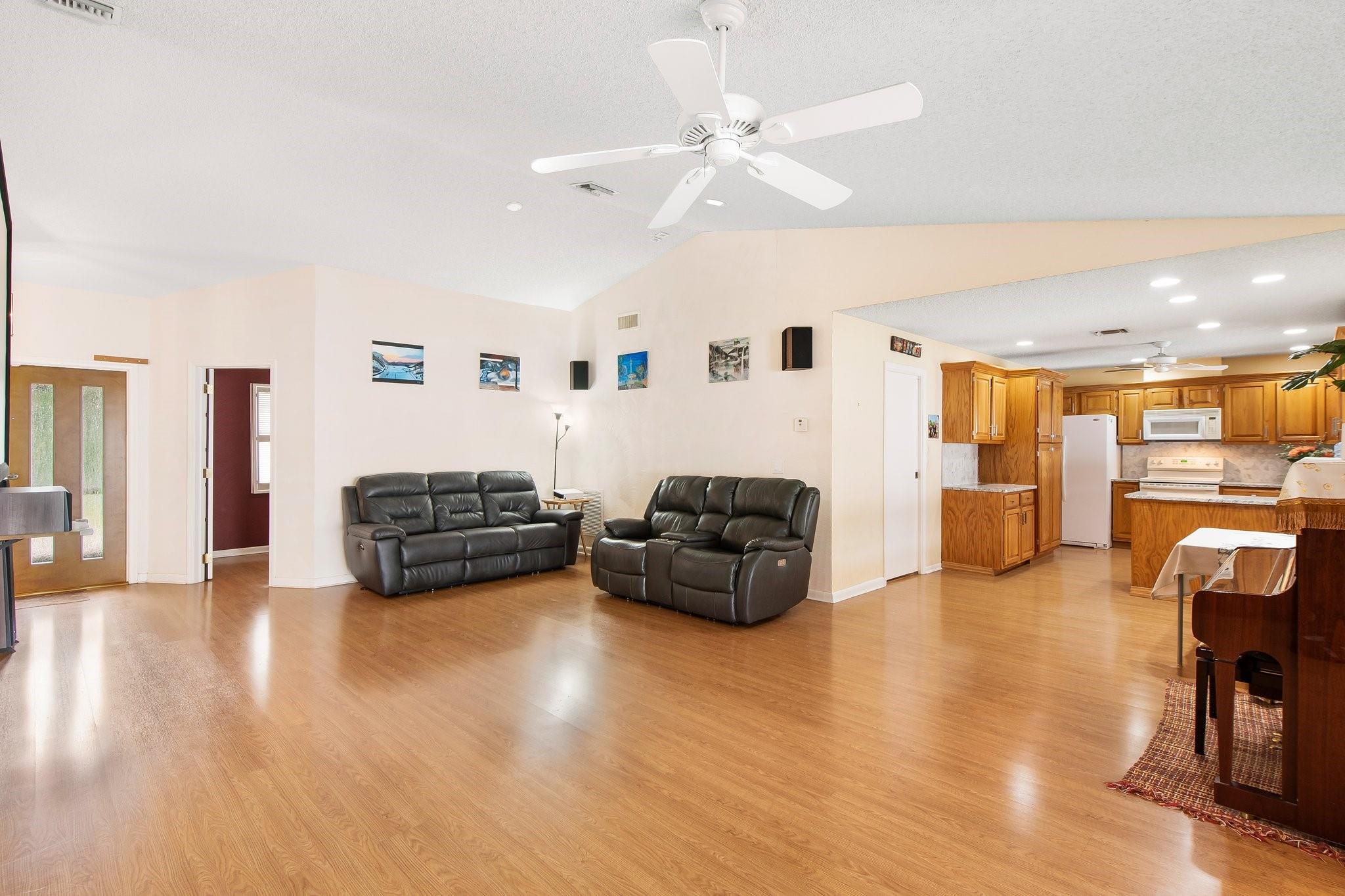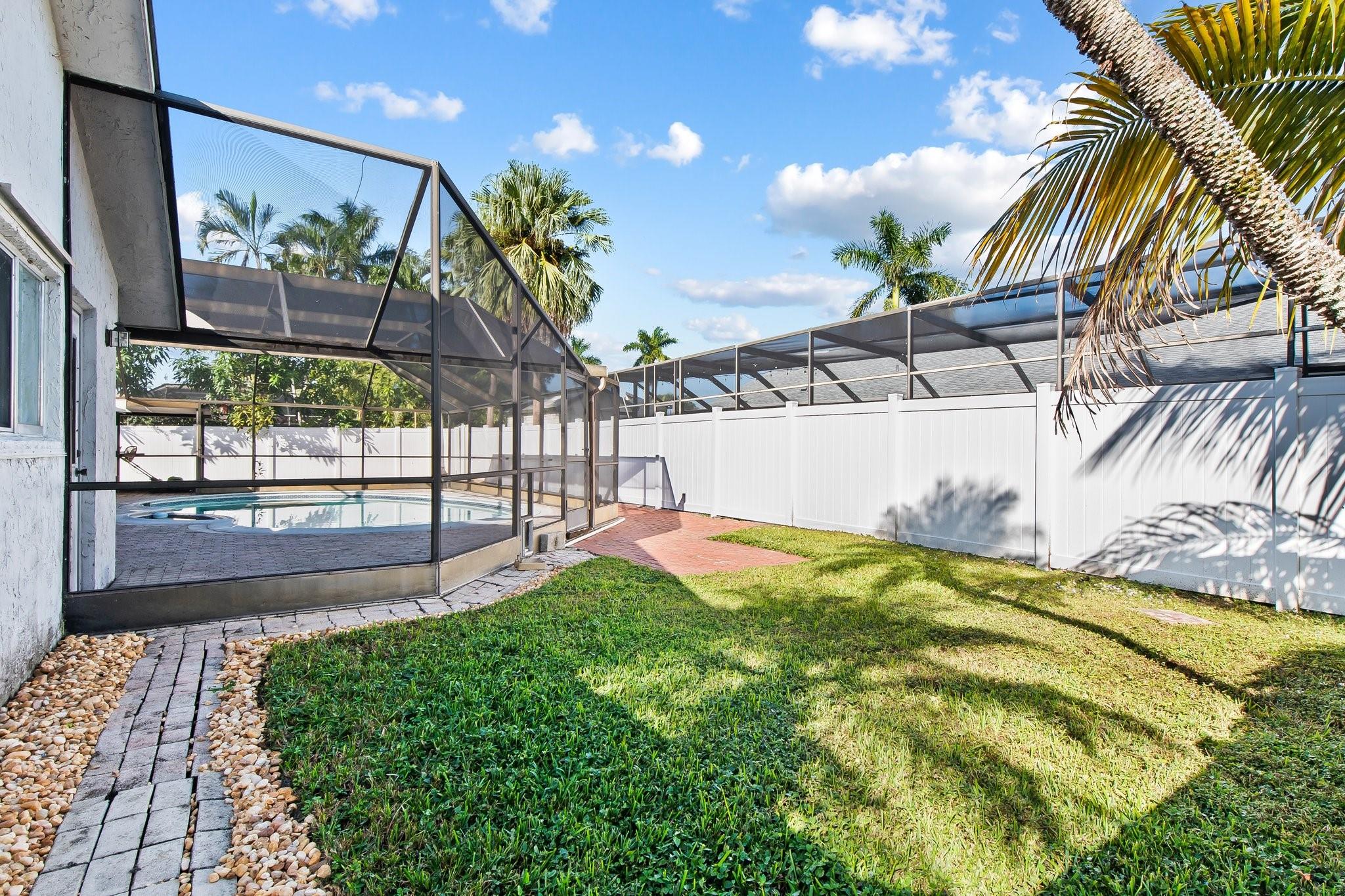 Welcome to this inviting 3-bedroom, 2-bathroom home in a peaceful, no-HOA neighborhood. The open floor plan features vaulted ceilings and a spacious living room with custom shelving, ideal for storage or display. The kitchen offers granite countertops and well-maintained cabinetry. Step outside to the screened-in pool and patio area, perfect for enjoying Florida’s outdoor living. Additional features include Newer roof 2019, CPVC pipes installed 2019, newer a/c 2020, new fence 2024, new dishwasher 2024, a two-car garage and a convenient location near schools, Nova Southeastern University, shopping, and beaches.