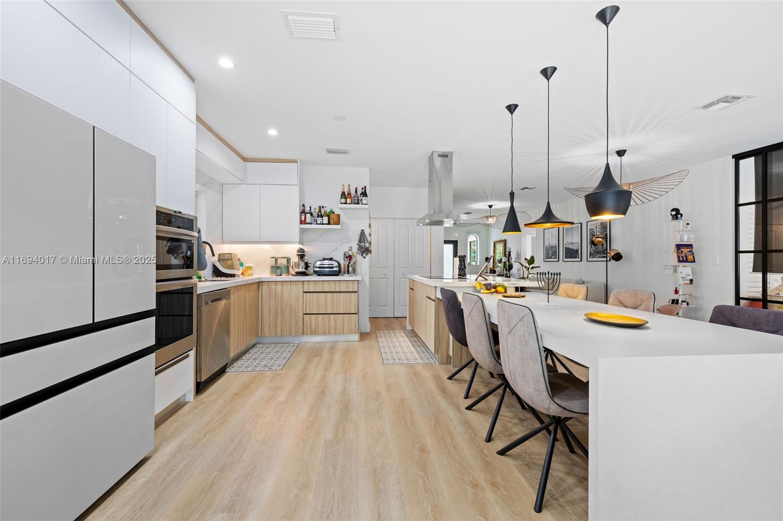 Stunning Renovated Smart Home in Miami Shores This 4-bedroom, 2-bathroom home features a modern open floor plan with high ceilings, custom wood accents, and a sleek kitchen with top-tier appliances and a large island. Enjoy a lush backyard with a heated saltwater pool, tropical landscaping and 2 pergolas providing a private and serene escape. The spacious master suite includes a walk-in closet and luxurious bathroom. Additional highlights include spacious bedrooms, a den, cozy family room, impact doors and windows, and smart home technology. Located in a non-flood zone, minutes from top schools and Miami Shores’ shops and dining, this 2,109 sq ft home offers style and convenience in a prime area.