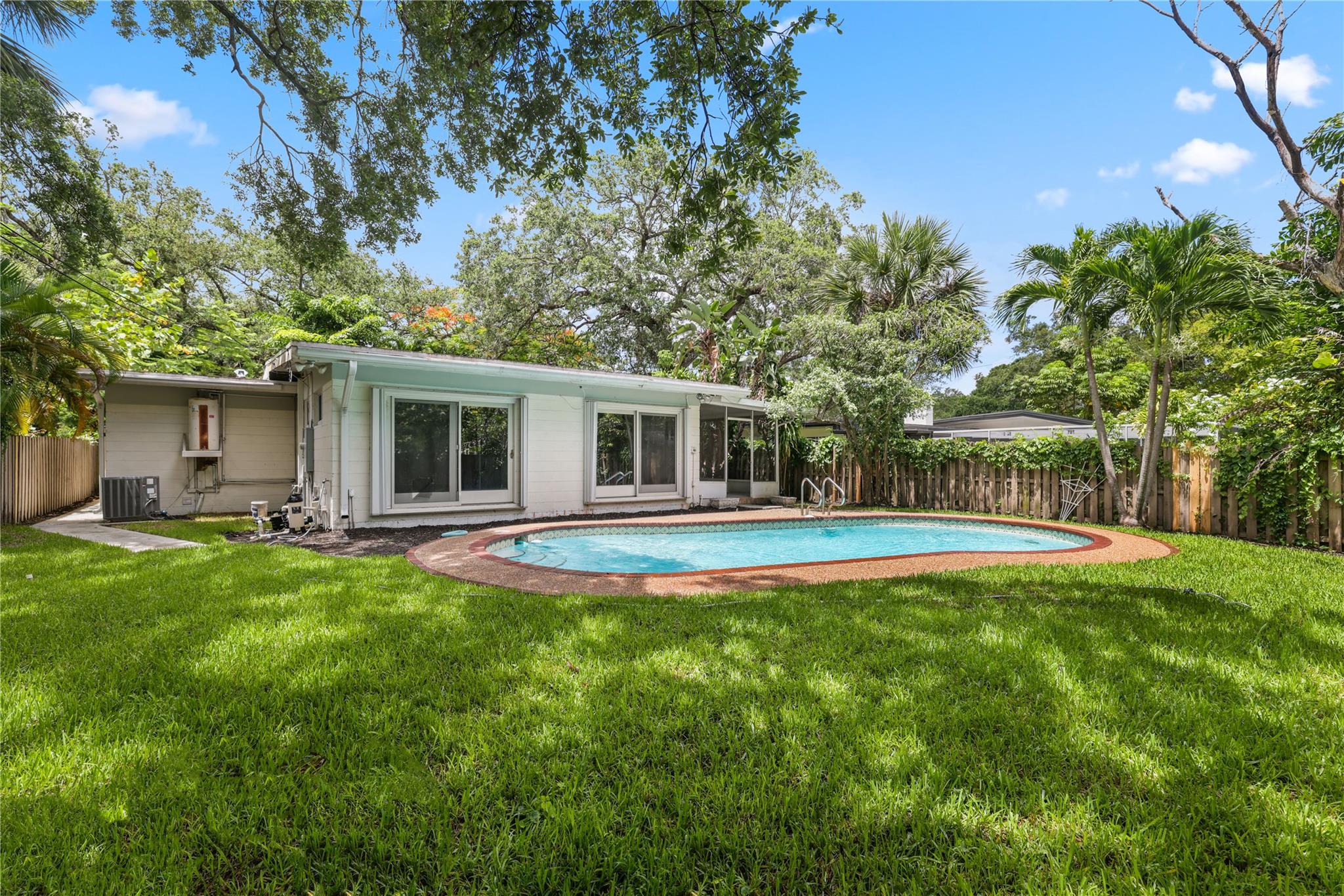Your dream home with a pool awaits in desirable River Oaks! No HOA! This 3-bedroom, 2-bathroom home features a cozy Florida room and beautifully redone, professionally landscaped outdoor spaces. The fenced backyard offers a tranquil retreat with a free-form pool, perfect for relaxing, entertaining, or giving pets room to roam. Nestled in a charming neighborhood, you’ll enjoy easy access to highways, nature centers, beaches, Fort Lauderdale airport, Las Olas, nightlife, galleries, and more. This home is a blank canvas ready for your vision—create your perfect oasis in an unbeatable location!