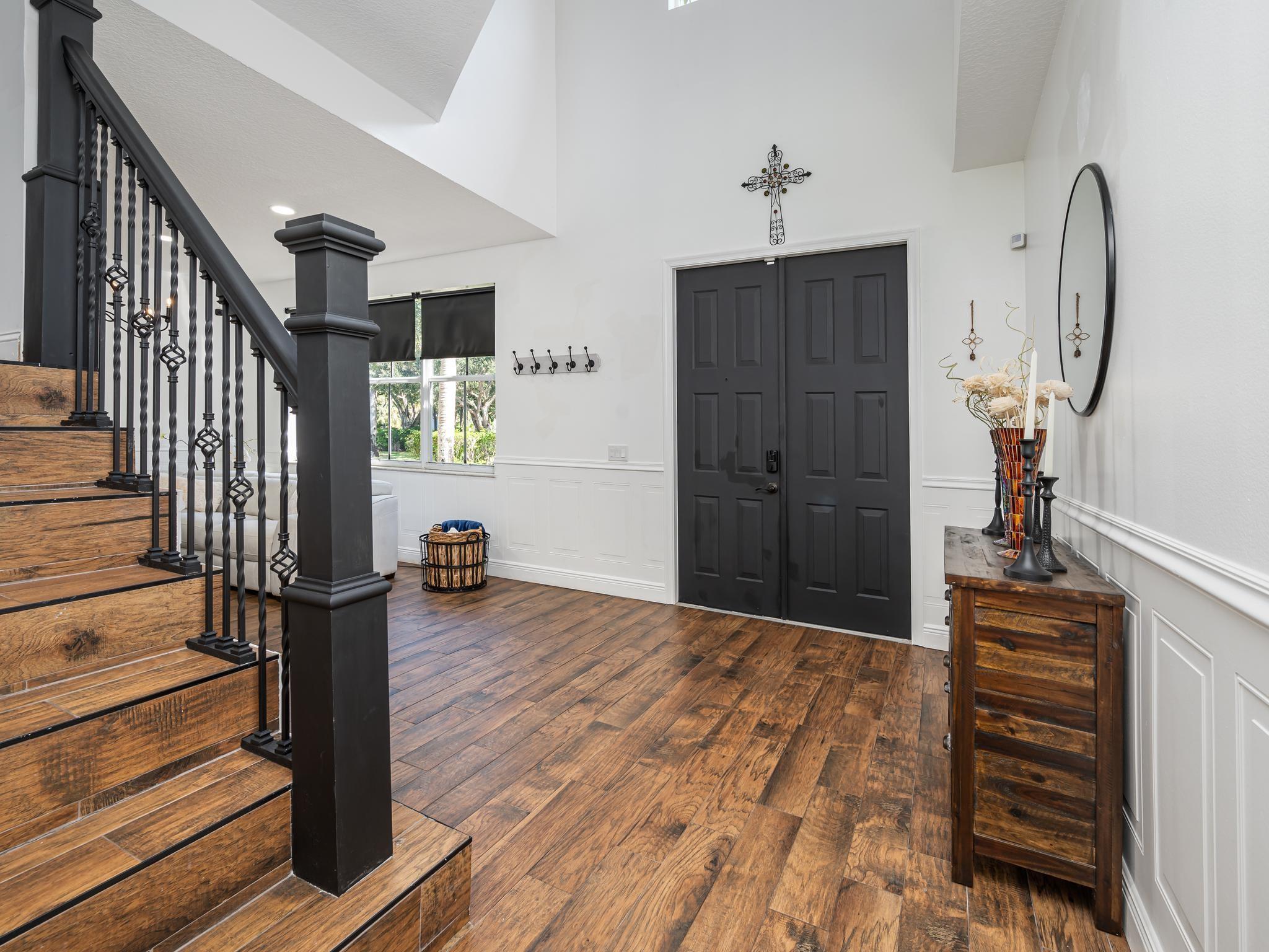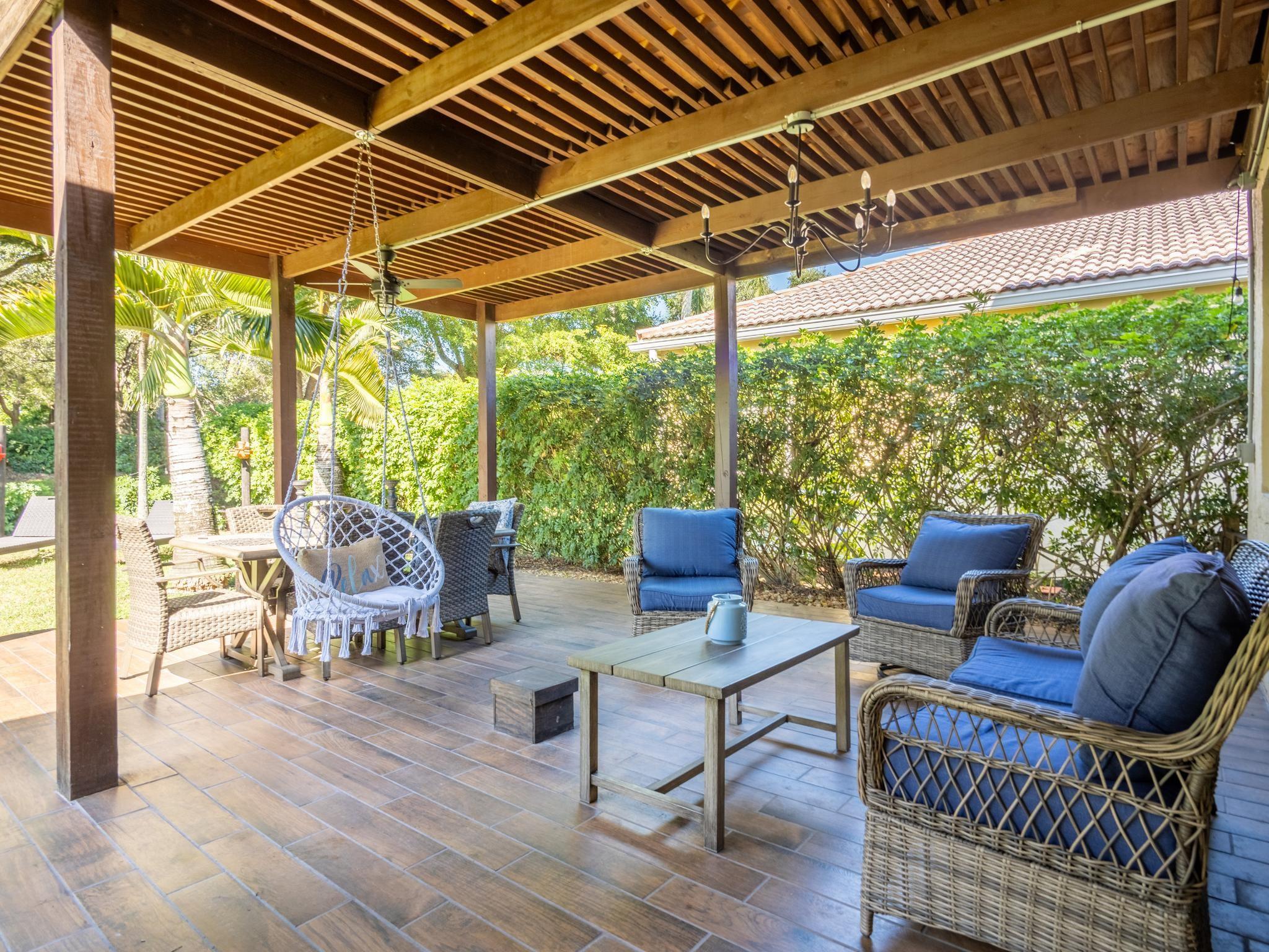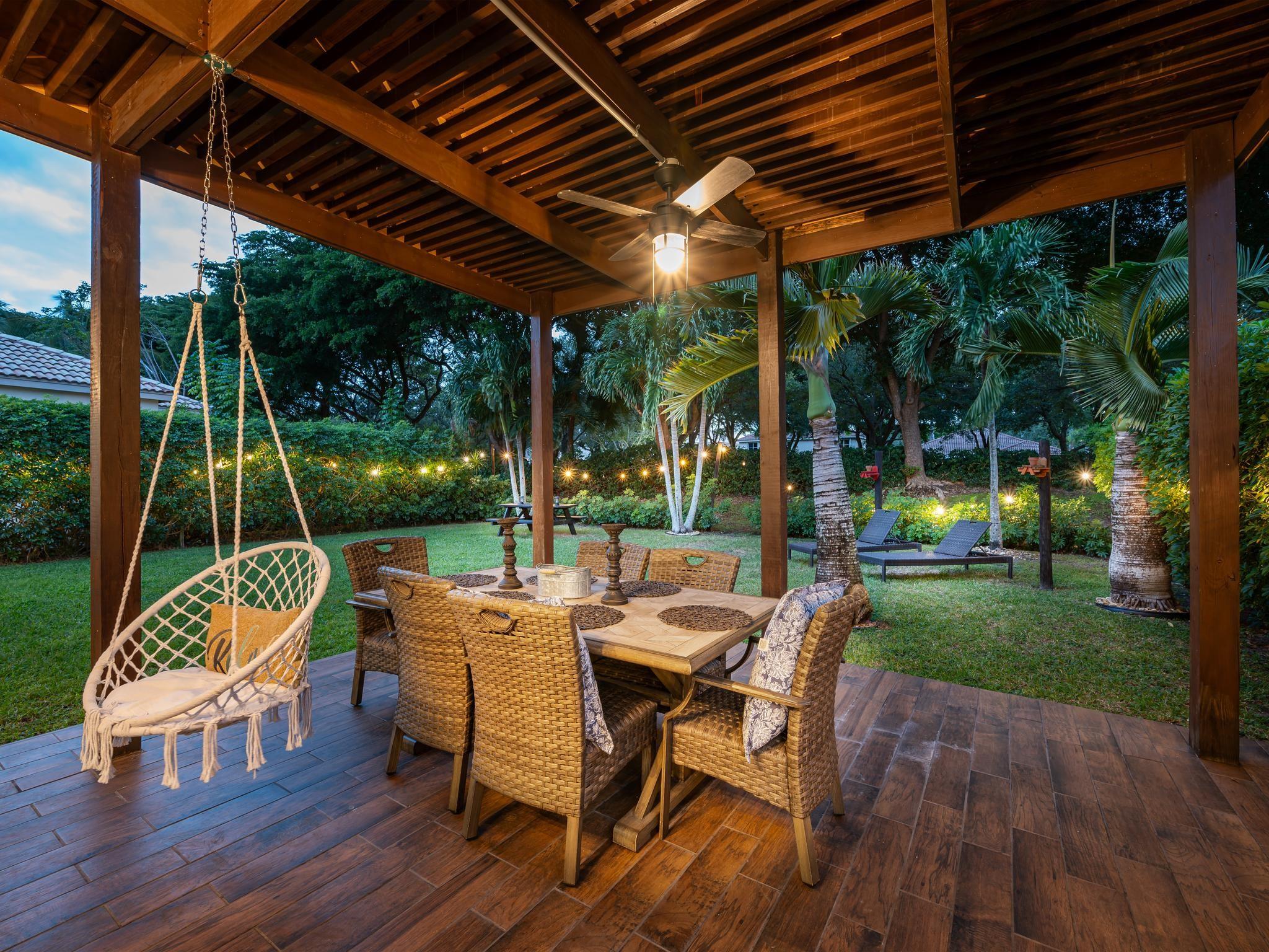 Tastefully remodeled and classy throughout home on lush landscaped private lot. Master Bath fully updated along with all other bathrooms, All newer flooring, newer ac units, newer electrical, new lighting fixtures, Newer water heater & more...Large Center island in kitchen accompanied by stainless steel appliances, beveled granite tops, and open feel. Living room has built in electric fireplace. Paradise backyard with huge pergola overhang that is plumbed for electric and water and great bbq spot. Tons of grass as well. This lot is special with no neighbors behind you. Classy interior charm with decorative chair rail, modern colors, metal banisters, & so much more. Guard Gated community. Pool, pickleball courts, basketball courts, clubhouse, walking trails, playgrounds. A+ schools.