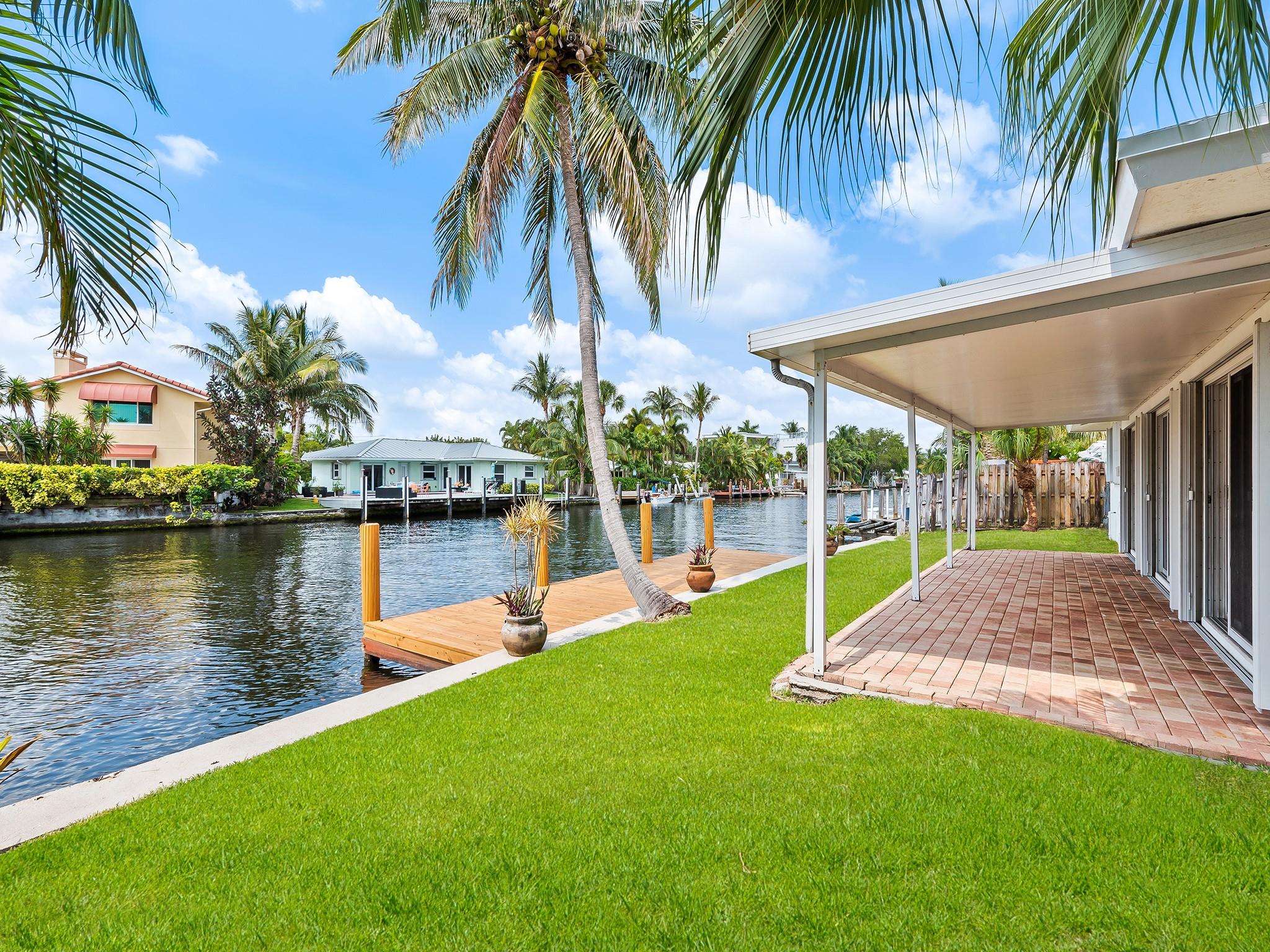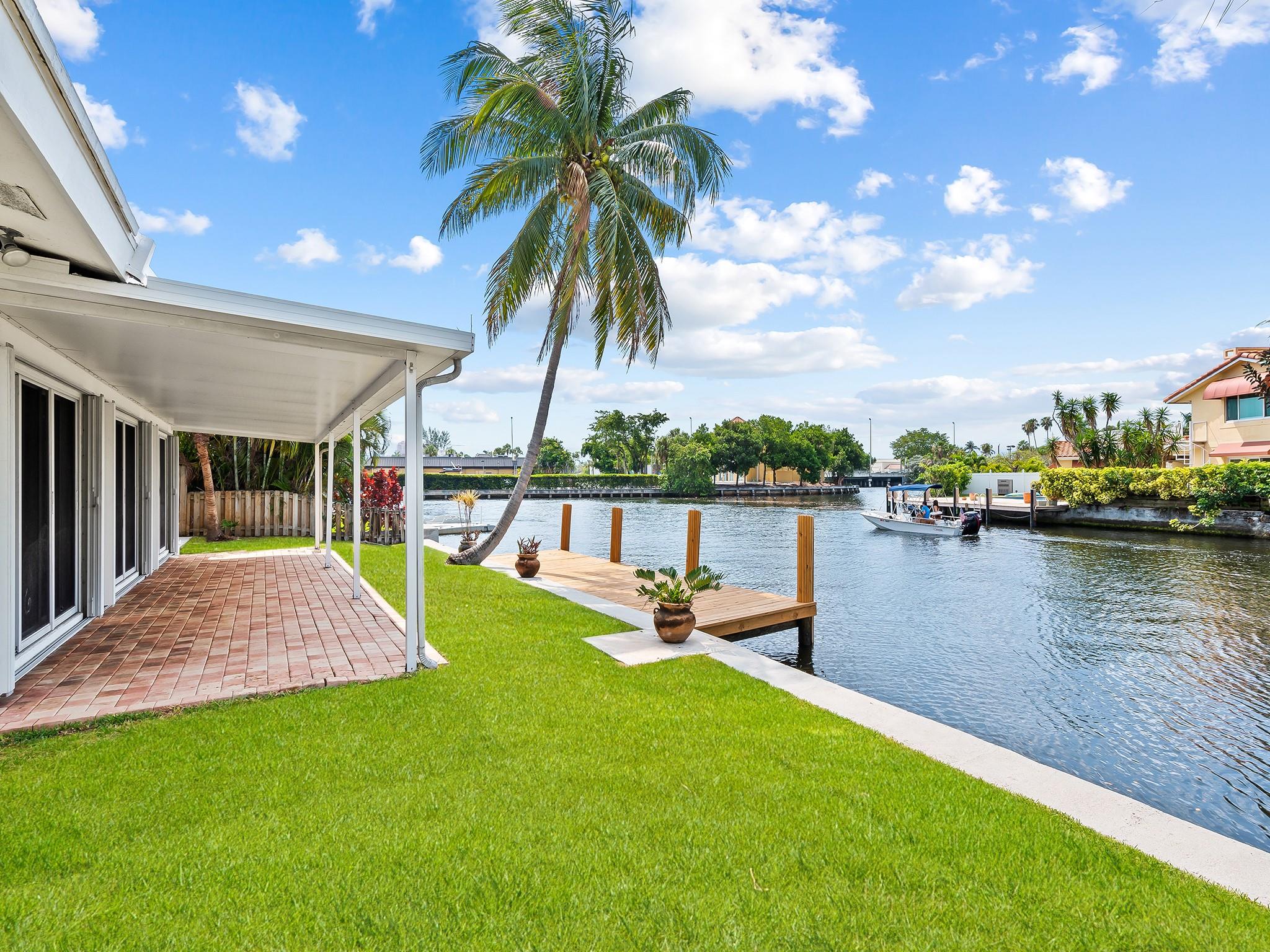 WATERFRONT WITH OCEAN ACCESS, this 3 bedroom, 2.5 bath East Wilton Manors home has stunning views of the middle river. Situated one home from the point lot and only two bridges to the intracoastal, this is a boater's paradise! Open floor plan. Large living room and dining room flow into the huge family room with a wall of triple sliding glass doors that lead to a covered lanai and endless water views. Kitchen has solid surface counter tops with a separate pantry and laundry room. Brand new flat roof, and new upgraded electric service panels. With 82 feet on the water and a 30 foot dock, this comfortable home is perfect for entertaining, it's a short distance to many upscale restaurants and stores and is also close to the beach. Needs to be viewed to be fully appreciated.