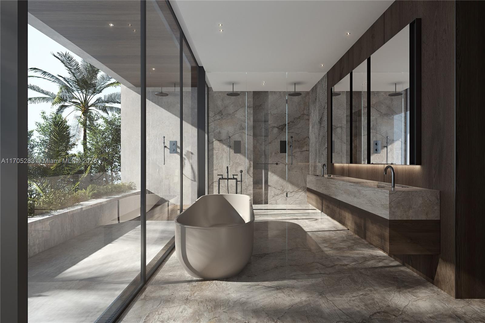 A rare opportunity to own a newly completed architectural masterpiece by Lalani Developers, designed by Yodezeen Architect & Design, ideally located on coveted Meridian Avenue across from the Miami Beach Golf Club. This 5-bedroom, 5.5-bath modern residence offers 5,197 square feet of refined interiors on a 10,400 square foot lot. Designed with exceptional attention to detail, the home features light-filled interiors with Turkish travertine, silver root marble, fluted stone finishes, Italian wood flooring, custom millwork, and sleek frameless doors throughout. The custom Poliform Italian kitchen is equipped with Gaggenau appliances and flows seamlessly into expansive living and dining areas framed by floor-to-ceiling glass, opening to a central courtyard & pool deck , covered outdoor dining with built-in BBQ, and fire pit lounge. Upstairs, four ensuite bedrooms include a primary suite with dual walk-in closets and private terraces, along with an expansive family room. A rooftop terrace crowns the home with panoramic views. Just moments from Lincoln Road and the ocean, this is an exceptional offering in one of Miami Beach’s most coveted enclaves.