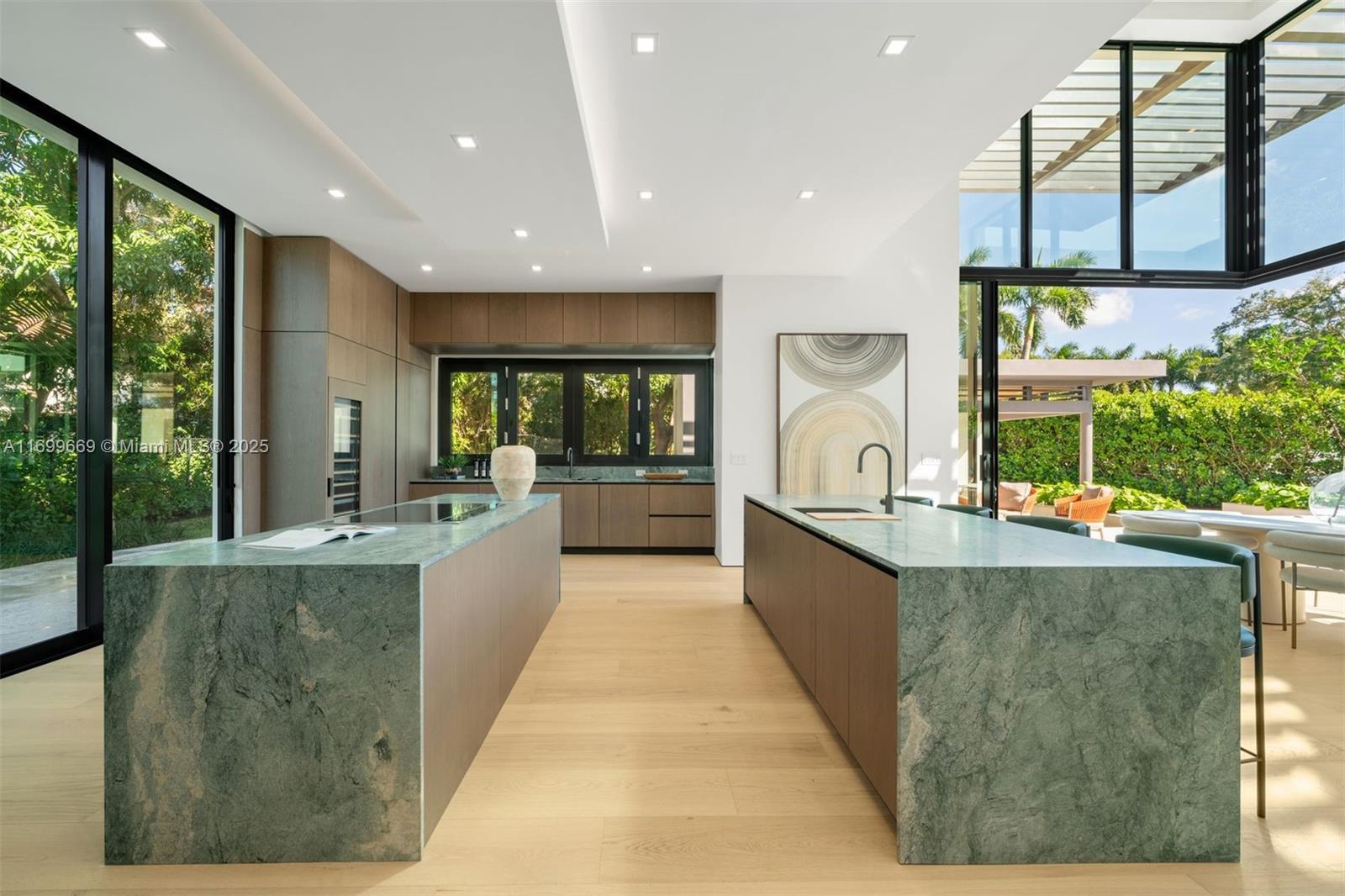 Experience the Pinecrest pinnacle of luxury living in this stunning new construction home. This modern 2-story residence features 7 Bed & 6.5 Baths, perfectly located on a private cul-de-sac. The home lifts the standards of quality & architecture w/ extraordinary European luxury marble, wood, + stone floors imported from Italy & Spain; integrating in & out with nature and the Miami sunlight through special large size windows/doors all across the house. Inside, the gourmet kitchen is equipped w/ high-end appliances & a custom wine cellar flowing effortlessly into a welcoming family area. The master private living room includes elevator & a spa-inspired bathroom, complete with a skylight, a freestanding tub, & dual vanities. Outside oasis features an infinity-edge pool, guest house, & more.