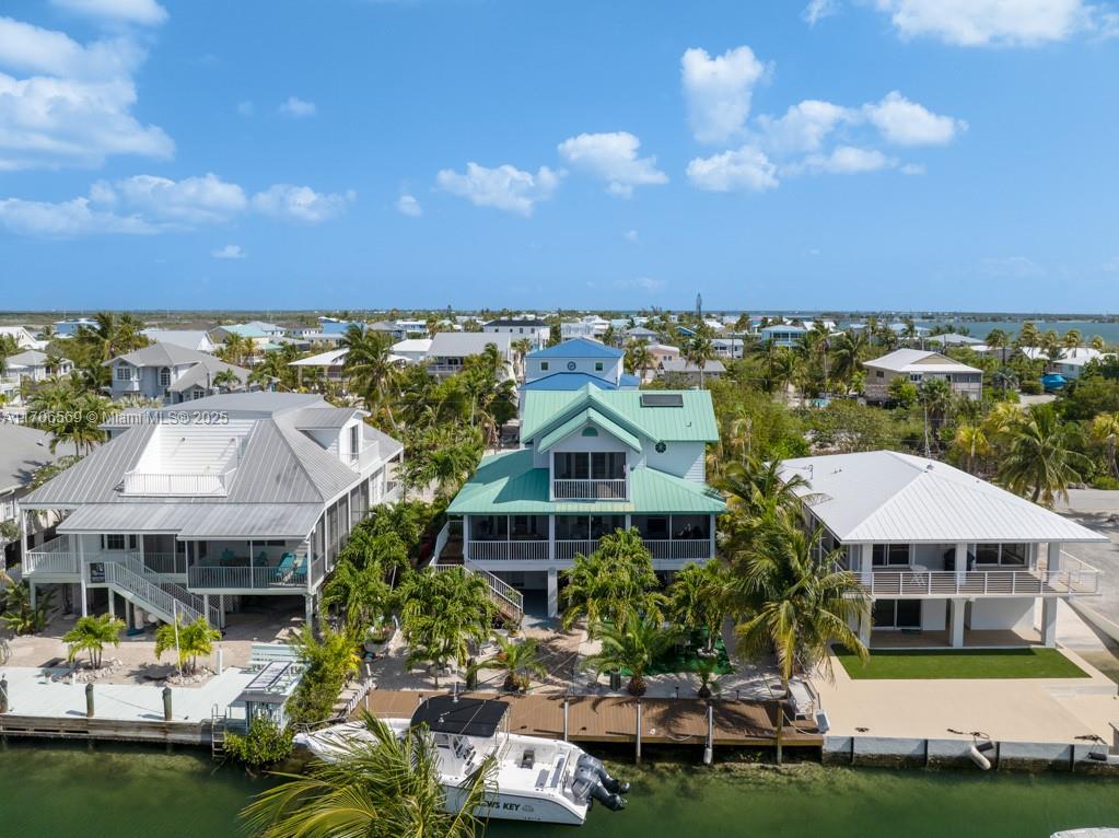 This Jolly Roger Estates treasure puts good times in the Atlantic and back-country waters within easy reach by boat; the owners of this custom-built home will consider all reasonable offers! The 2-story stilt home has exceptional character, multiple inviting porches and outdoor sitting areas. Abundant kitchen cabinets are topped with stunning quartzite counters and a full-length screened porch overlooks the oceanside canal. Designed by the renowned Keys architect, Glenn Gray, the air-conditioned living space totals 1820 sq. ft. on two levels with two bedrooms (one with a porch), one bath, washer and dryer on the main level; the primary bedroom with ensuite bath, his and hers closets, and porch with open water and neighborhood views are on the upper level.