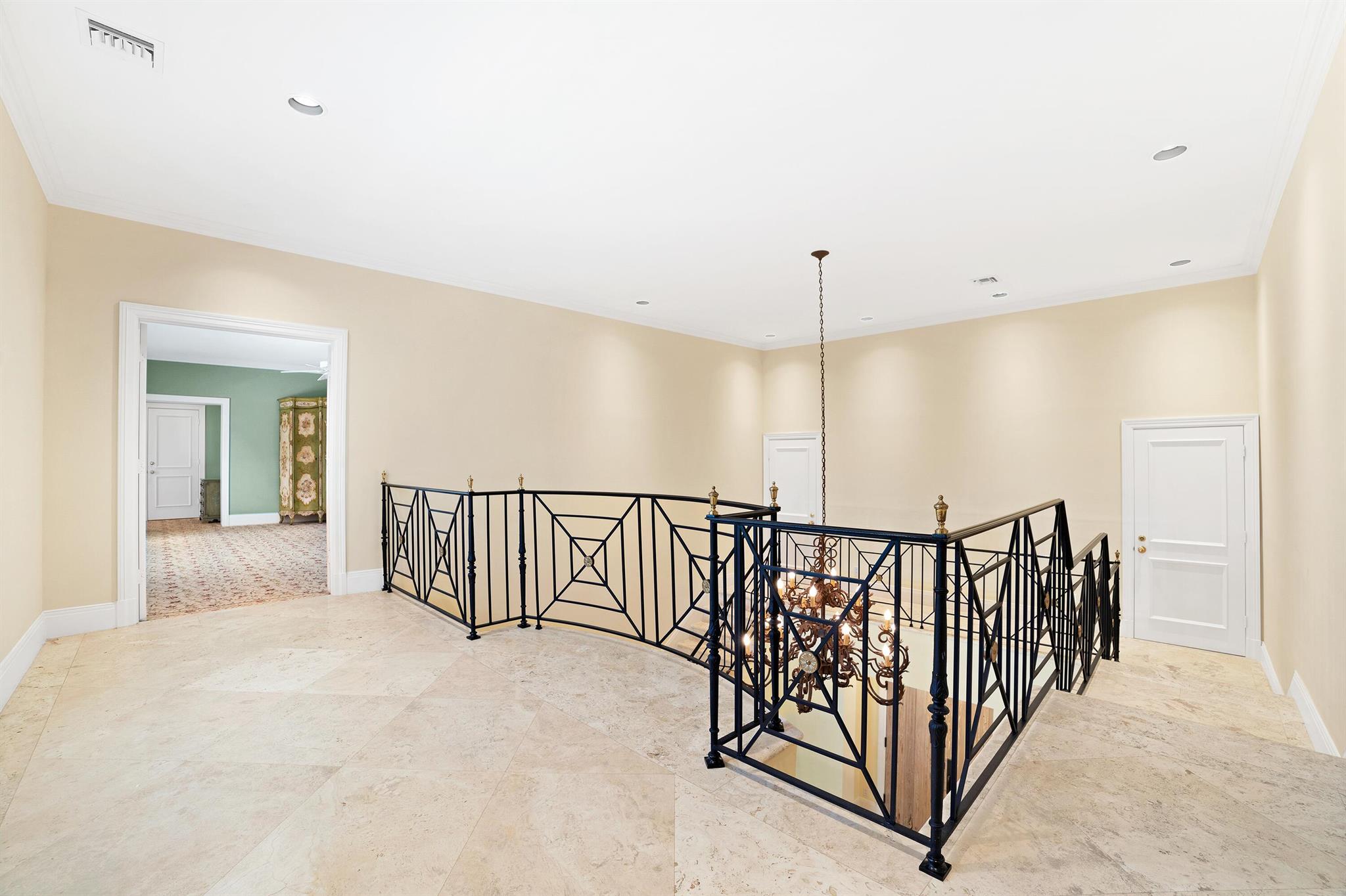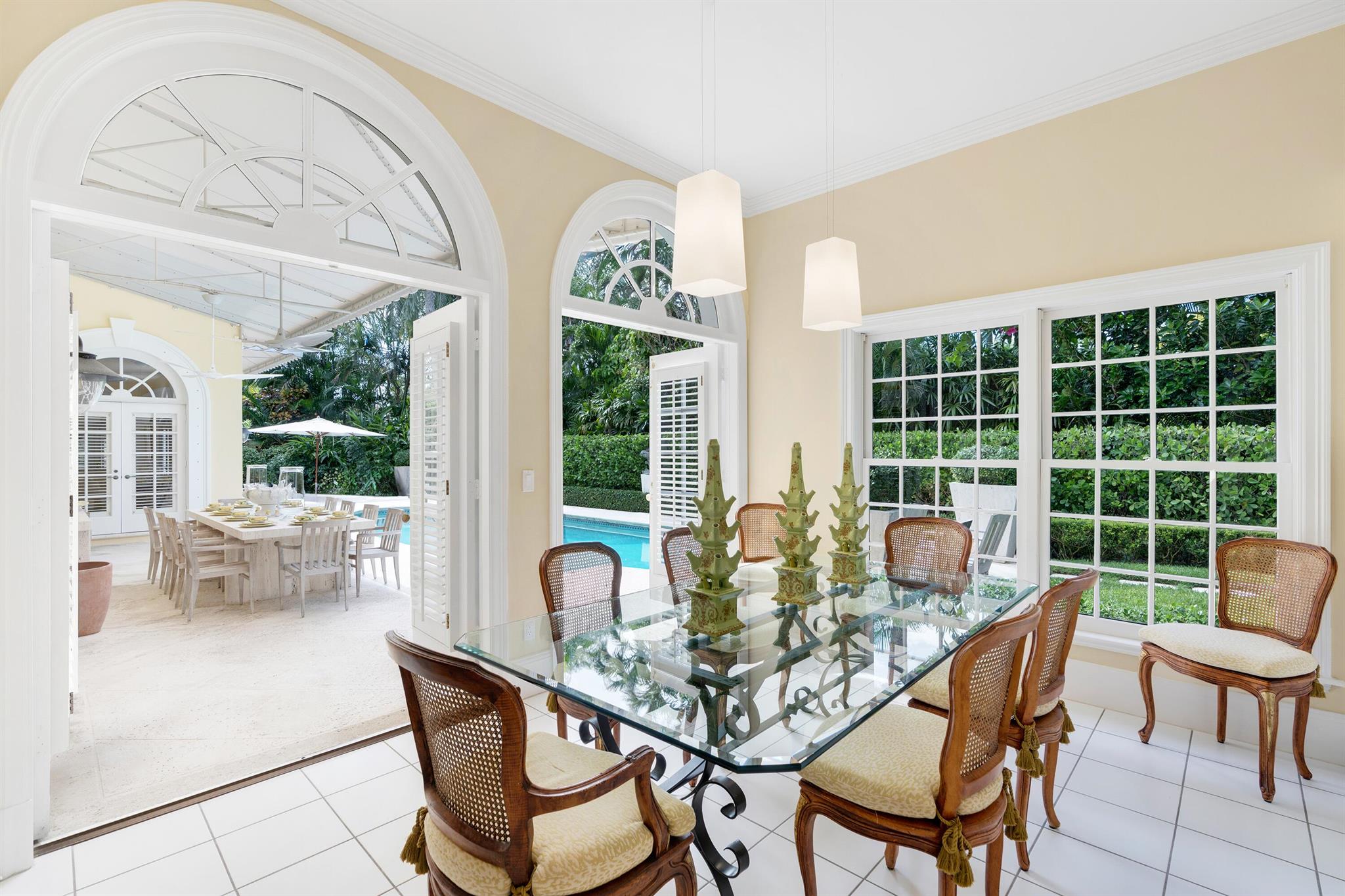 This British Colonial residence offers 6,922+/- total square feet with five bedrooms and six and a half bathrooms. Set on a 100' x 172' lot at the corner of Tangier Avenue and North Lake Way, the property features a large pool, covered loggia, and beautifully maintained grounds.The spacious foyer opens to the formal living room and a central gallery hall that connects the main living areas. The family room, located on the south side, opens through French doors to the covered loggia and pool. On the north side, the gallery leads to the formal dining room, library, and kitchen with adjoining dining area--an ideal layout for both everyday living and entertaining.Two guest bedrooms are located on the first floor, each with en suite baths and walk-in closets--one currently serving as a