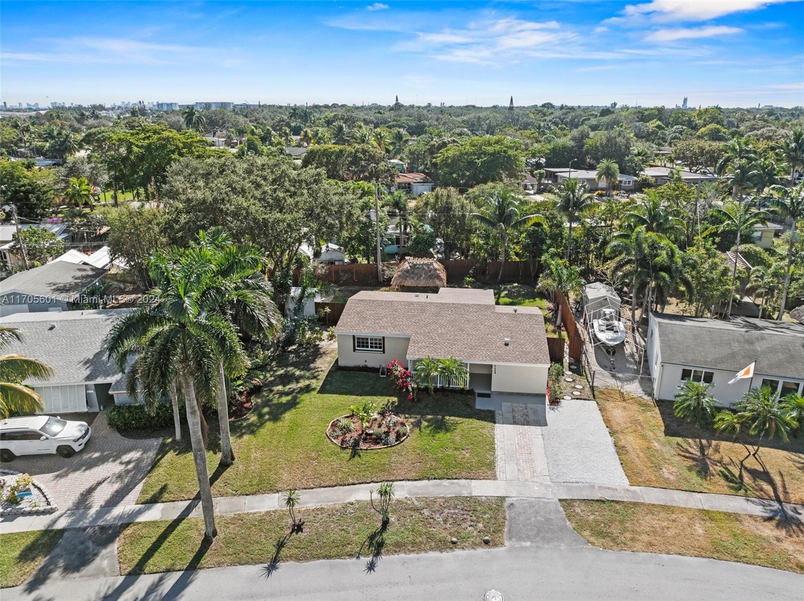 Beautiful house with 3 bedrooms and 2 bathrooms which has been completely remodeled. The open kitchen has all granite counters, white cabinets & SS appliances. New roof (2024). The living room area has a fireplace. The second bathroom comes with a jacuzzi tub. The windows/doors are impact. Oversize laundry room. Huge patio with a tiki hut with enough room for a pool. Sprinkler system and new fece all over the property. The location is perfect as you are approx 15 minutes to the beach, 10 min to Las Olas, 7 min to the airport, 12 min to Hard Rock, and next to 95/595/Turnpike.