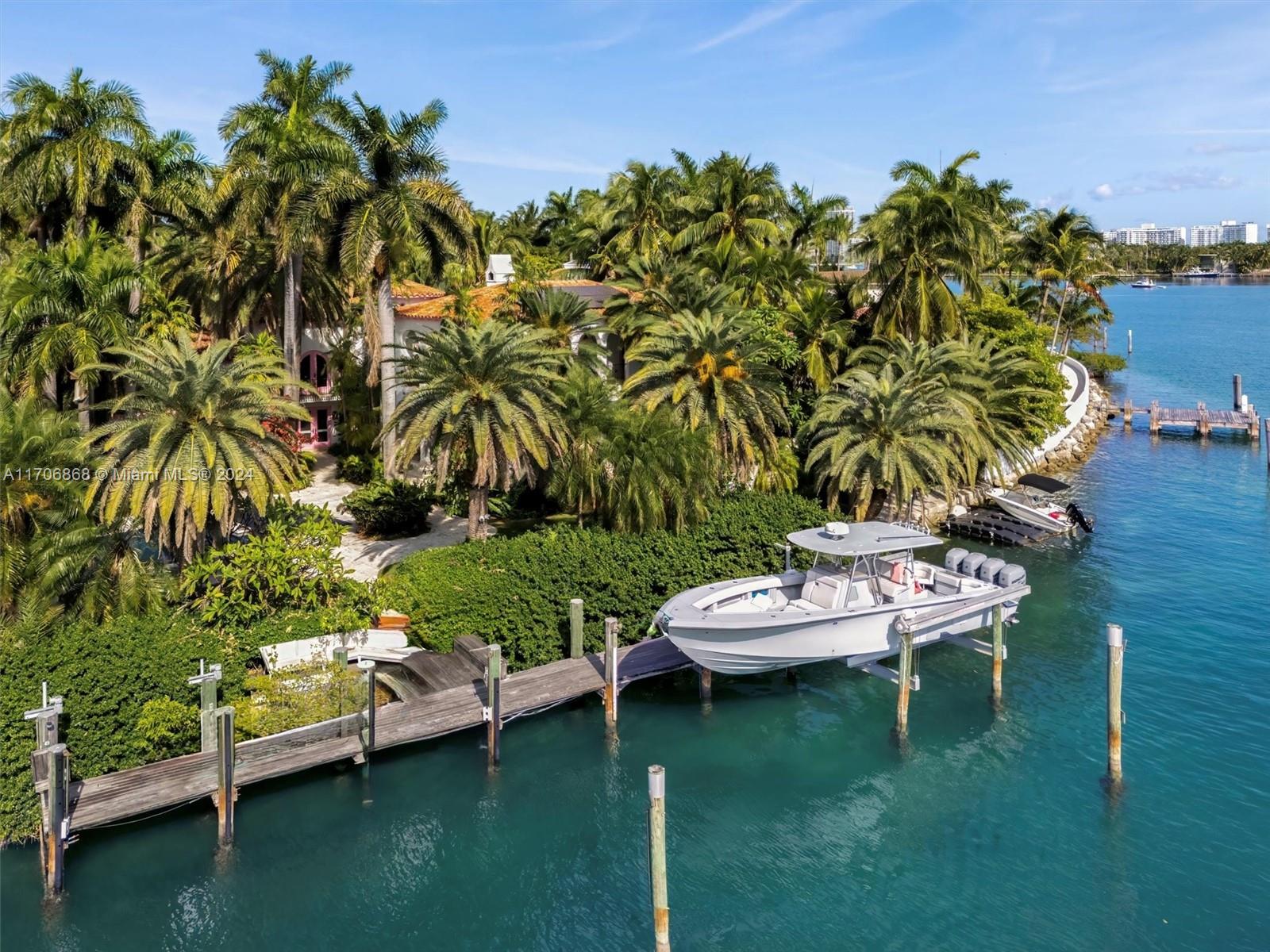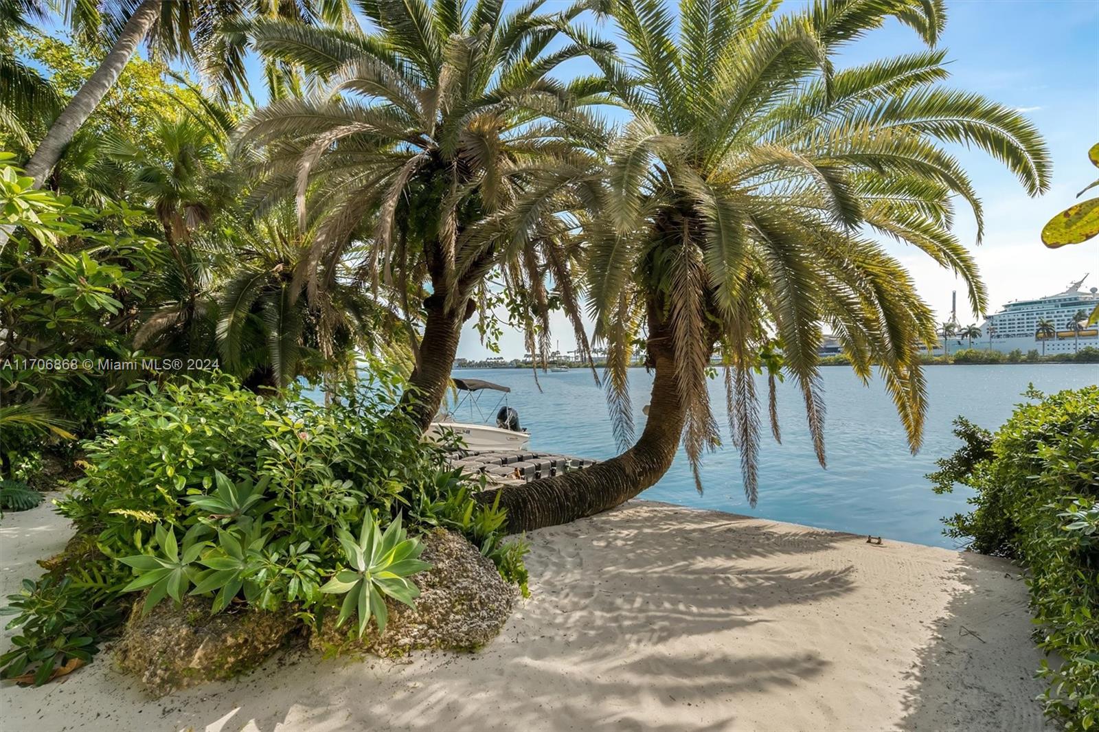 This Mediterranean Revival estate seamlessly blends classic architecture with modern luxury. Fully renovated in 2009, the home sits on a sprawling 35,348 sq. ft. lot on prestigious Palm Island, offering 220’ of prime south-facing waterfront capable of accommodating yachts up to 205’. A spacious addition includes a luxurious primary suite, chef’s kitchen, and family wing. Exceptional amenities include a home theater, gym, steam rooms, bocce court, wine cellar, heated pool, spa, private beach, and a serene courtyard. A separate guest house, smart home technology, lighting controls, and solar panels complete this lush, gated haven. Surrounded by exotic landscaping, this estate embodies sophistication and privacy in the exclusive, police-guarded Palm Island community.